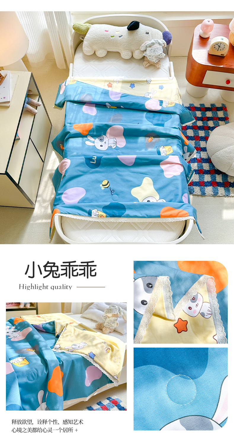 • 91家纺网 家纺一手货源 找家纺 (总)春妮家纺 2026新款全棉花边儿童幼儿园小被子夏被空调被夏凉被,遨游天空,彩虹小熊,动物乐园,欢声笑语,萌宠奶龙,嬉皮笑猫,小兔乖乖,玉桂小兔