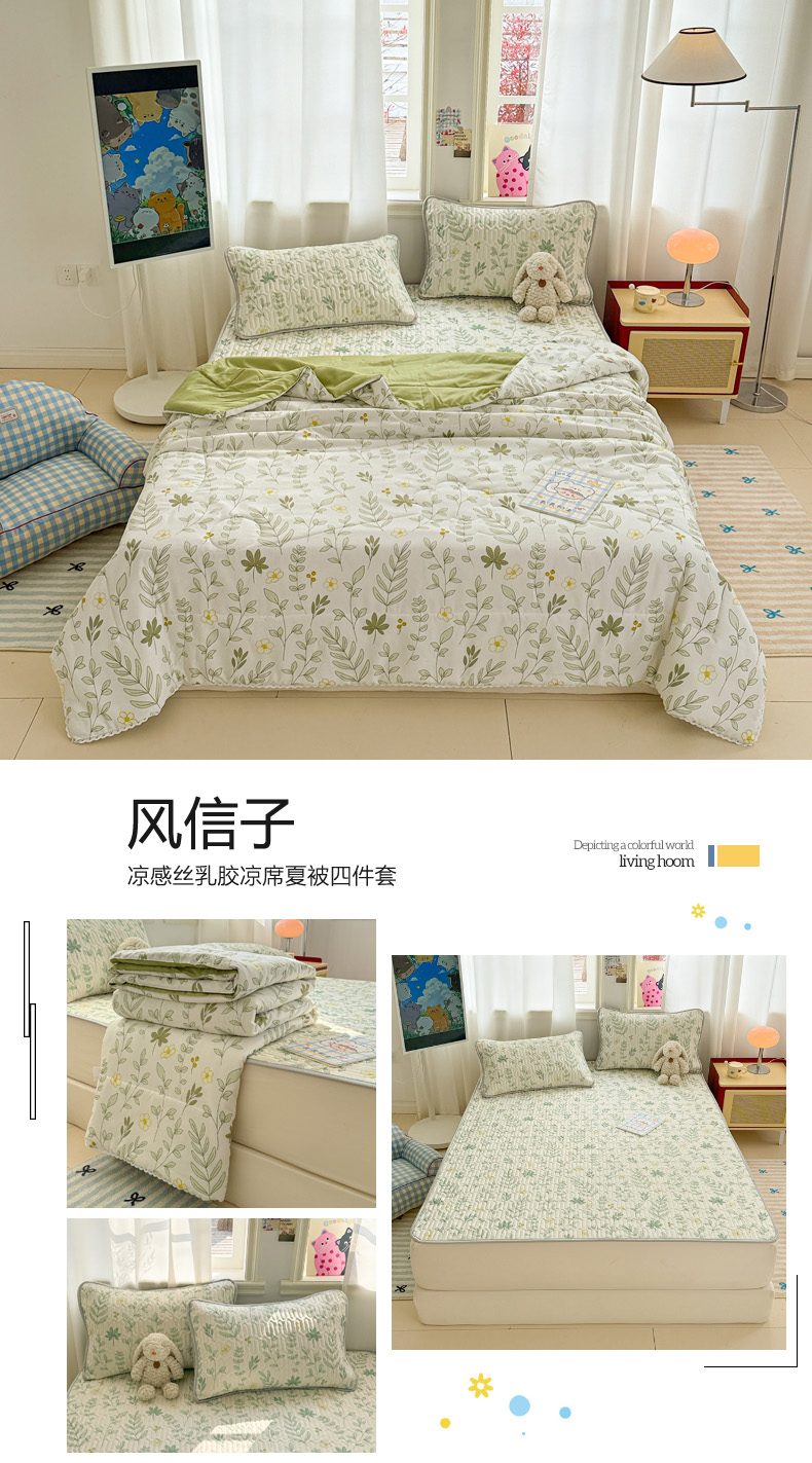 • 91家纺网 家纺一手货源 找家纺 慕尚家纺 2026新款乳胶凉席夏被空调被夏凉被套装组合 风信子