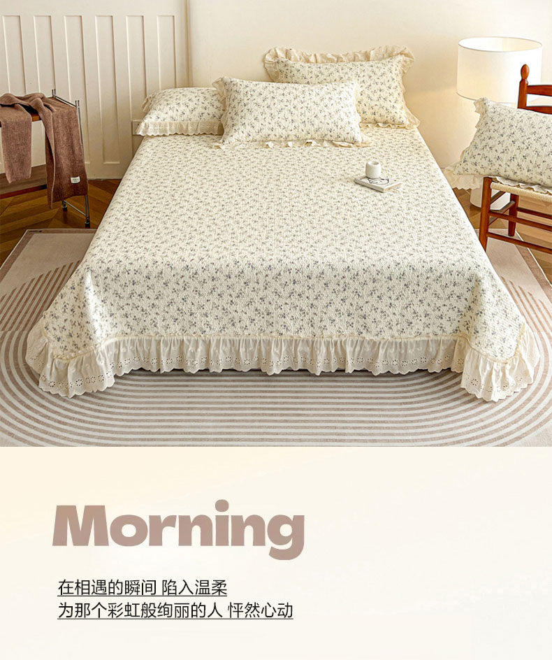 当前位置: 91家纺网 > 商品网购 > 床品套件 > 四件套 > 全棉普通四件套 > 羽爱家纺 2026新款全棉水洗韩版花边床盖四件套 安然花语