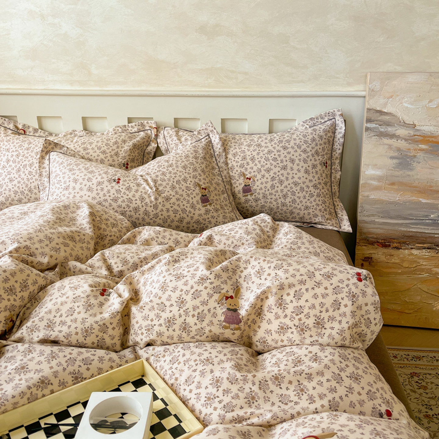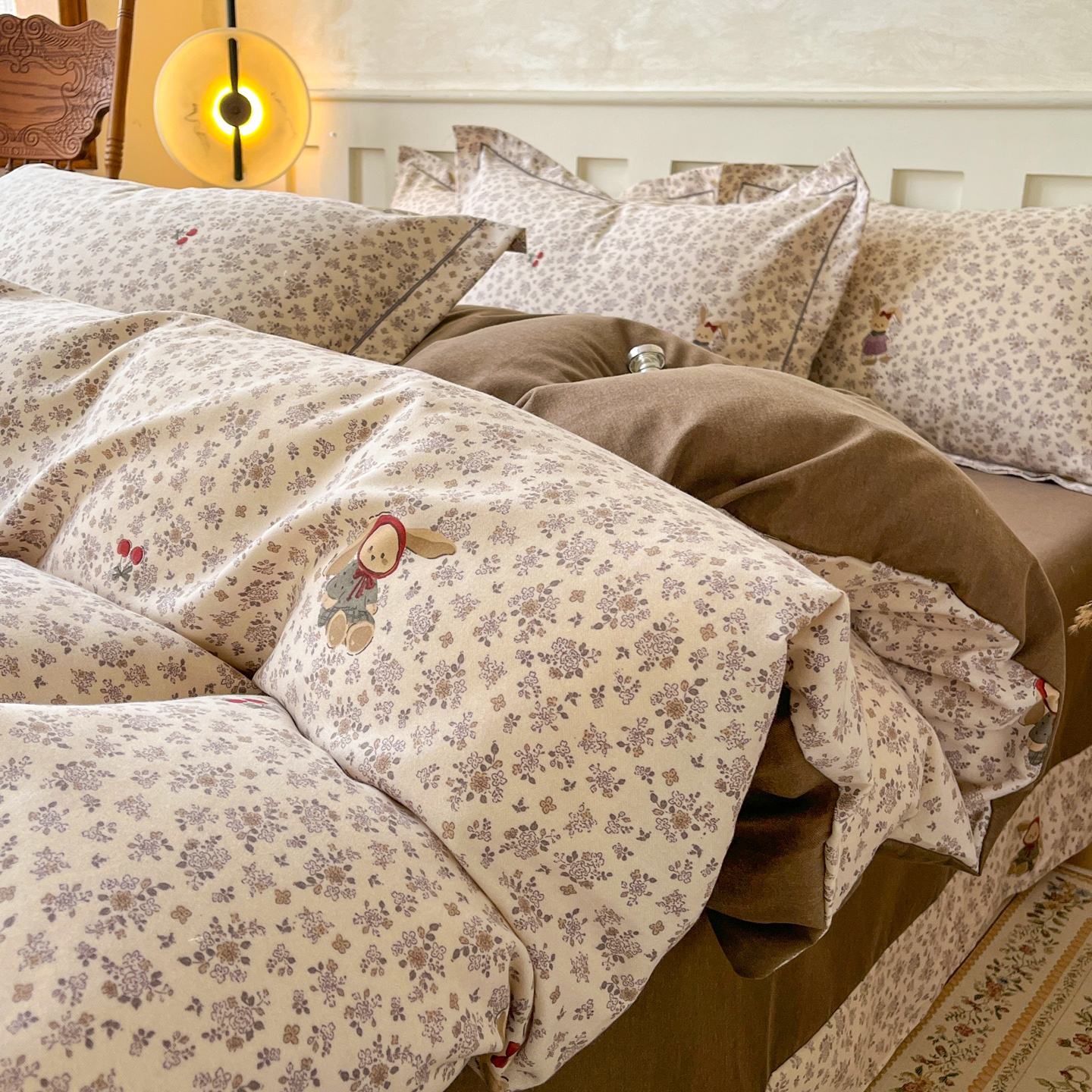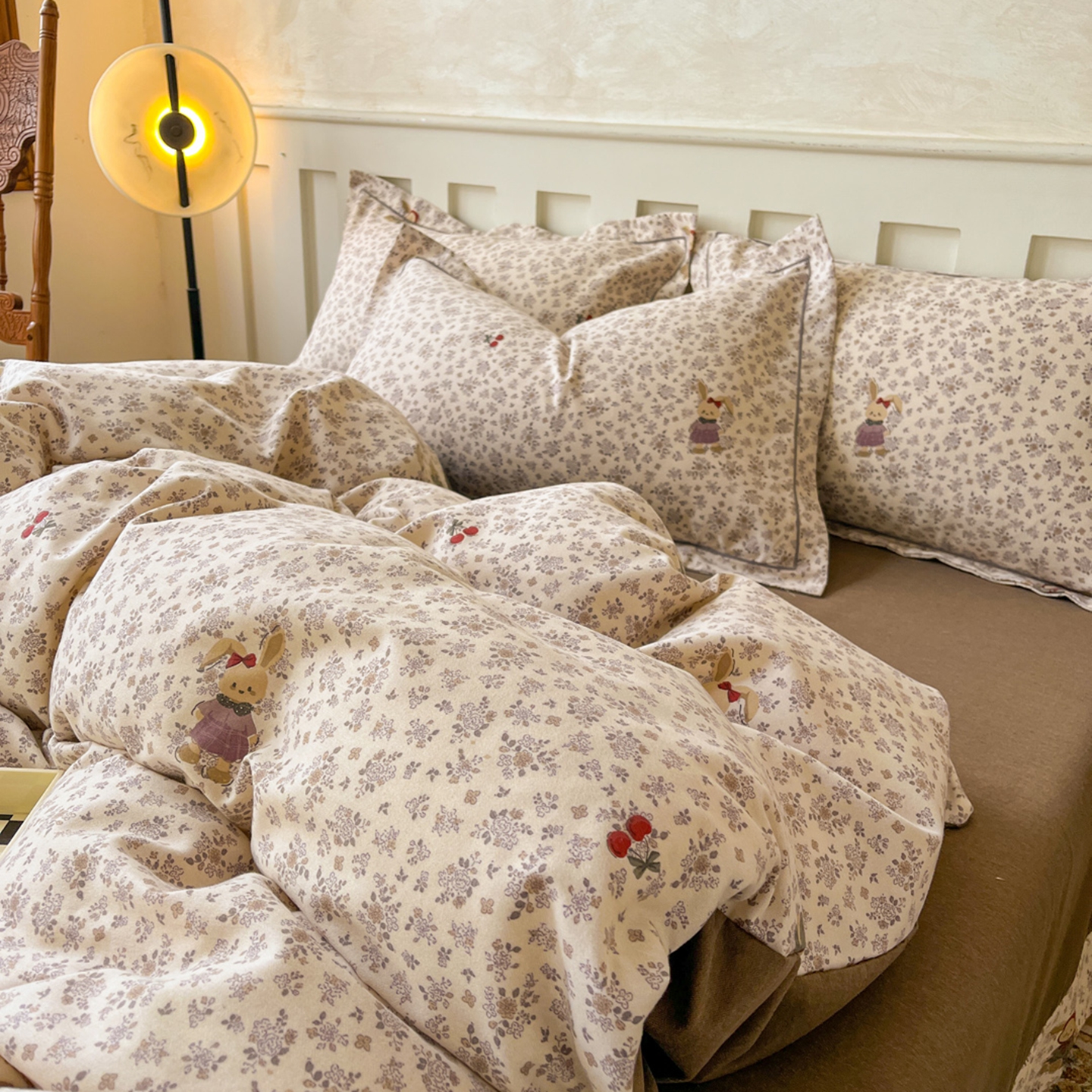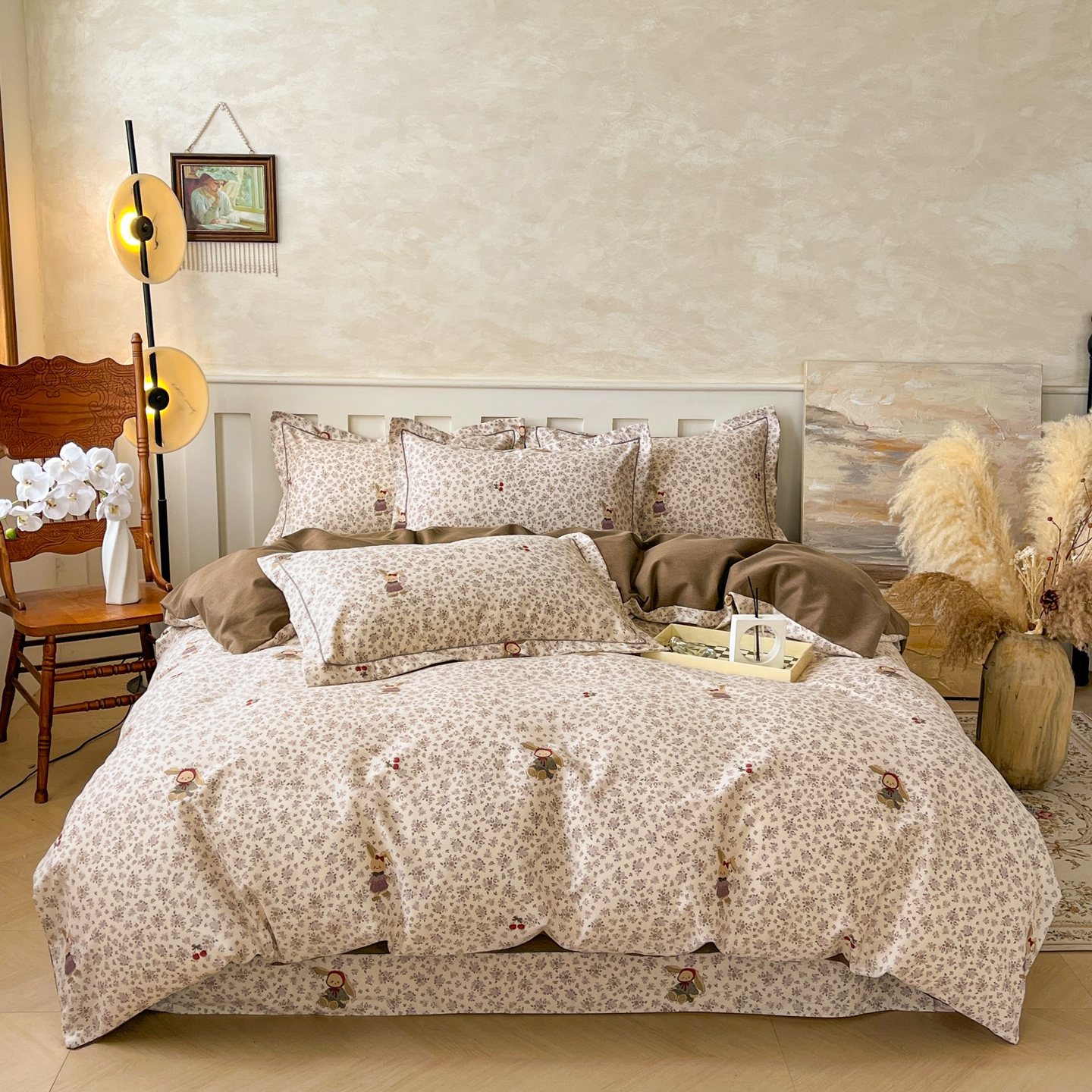 简约家纺 2025新款全棉磨毛印花单品床单 甜甜兔-咖
