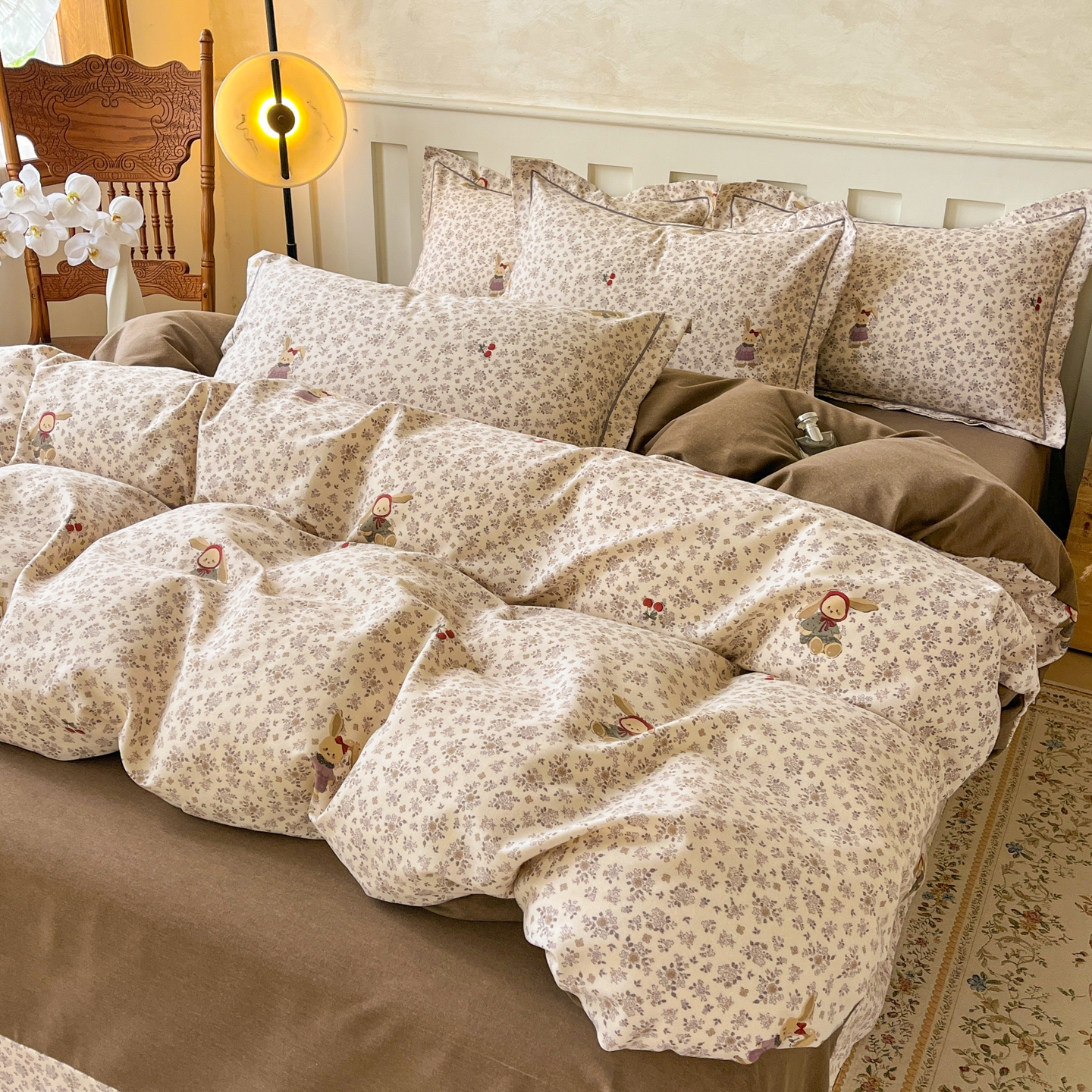 商品名称:简约家纺 2025新款全棉磨毛印花单品床单 甜甜兔-咖