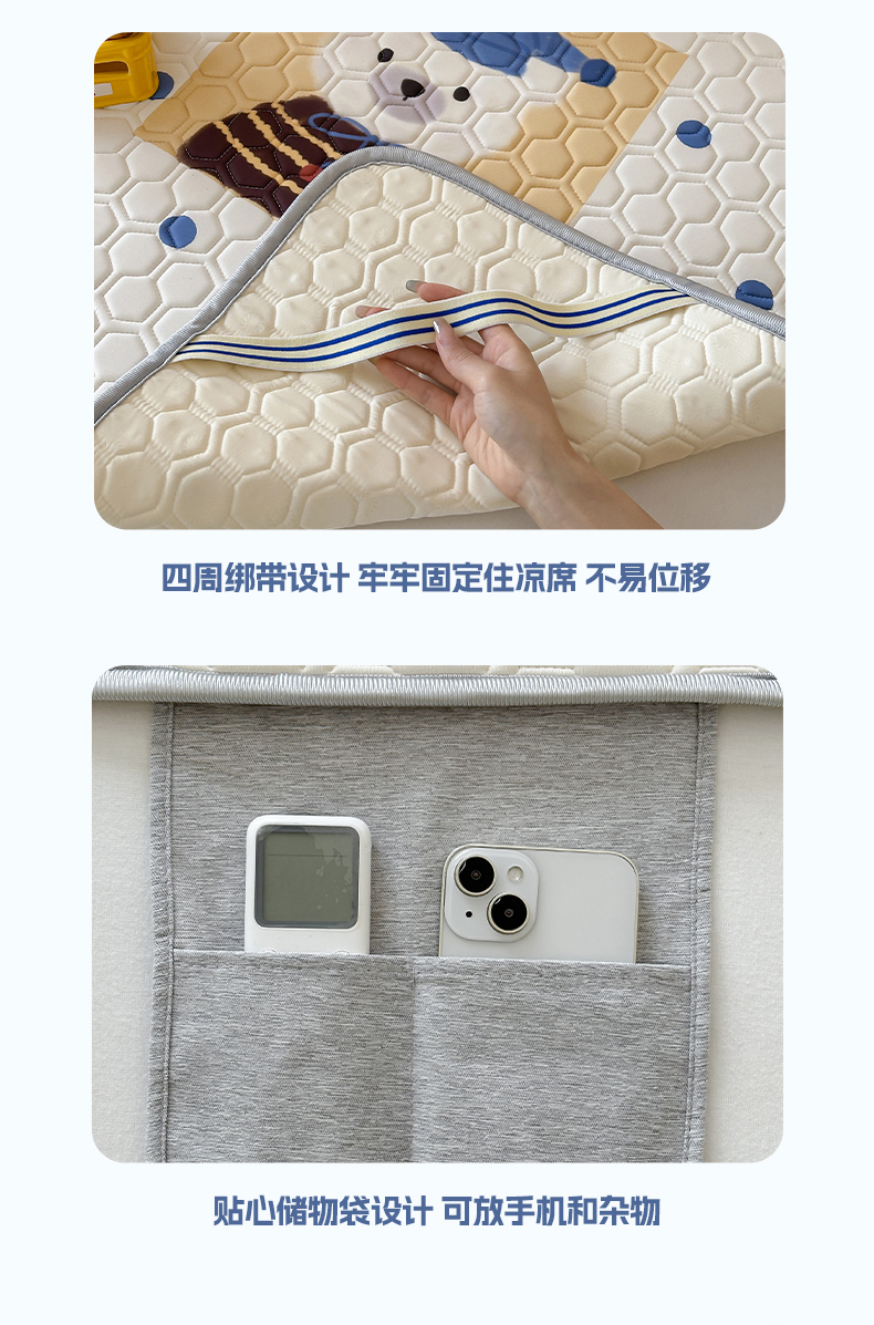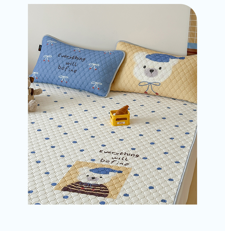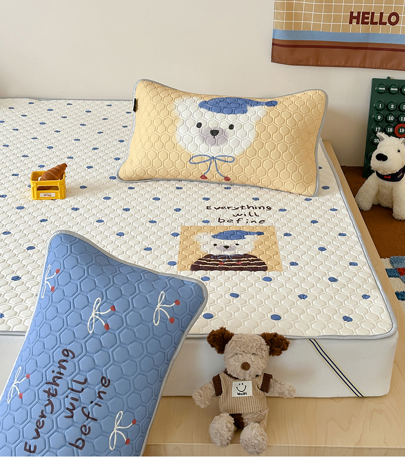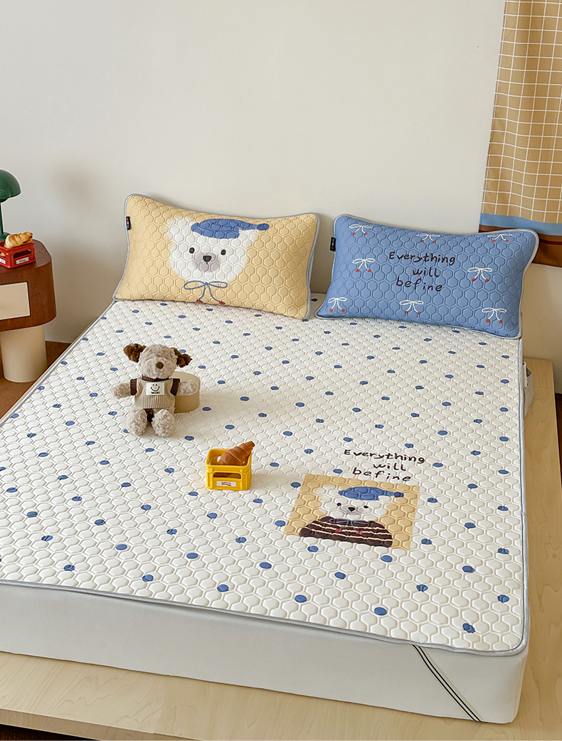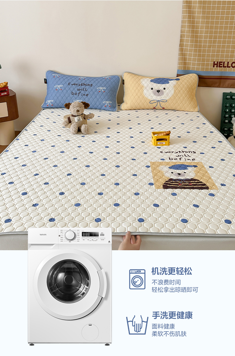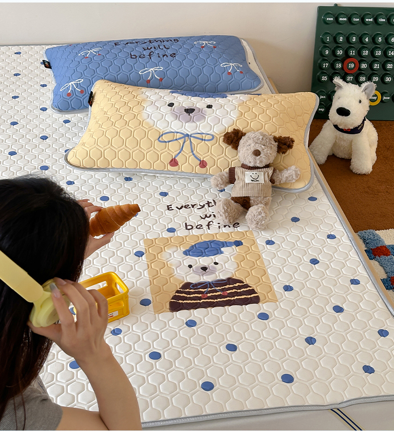 商品名称:RYB红黄兰 2026新款ins设计师原创款大版冰皮凉感水洗乳胶加厚6mm凉席三件套 波点熊仔