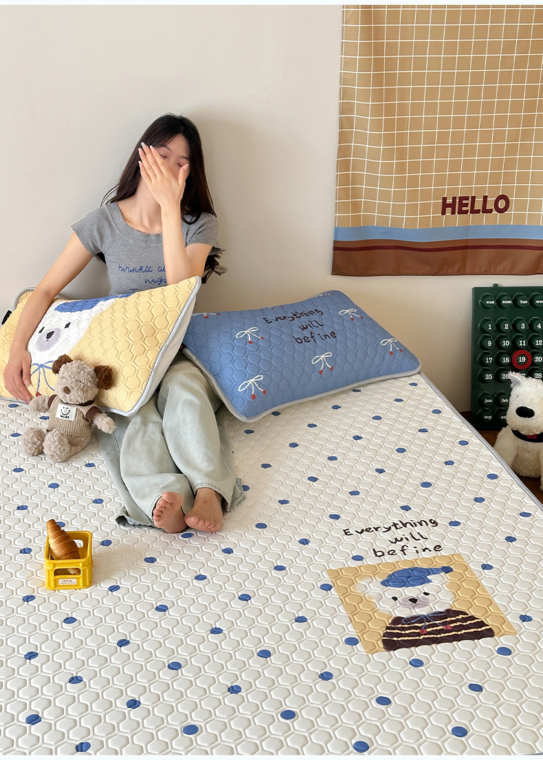 RYB红黄兰 2026新款ins设计师原创款大版冰皮凉感水洗乳胶加厚6mm凉席三件套 波点熊仔