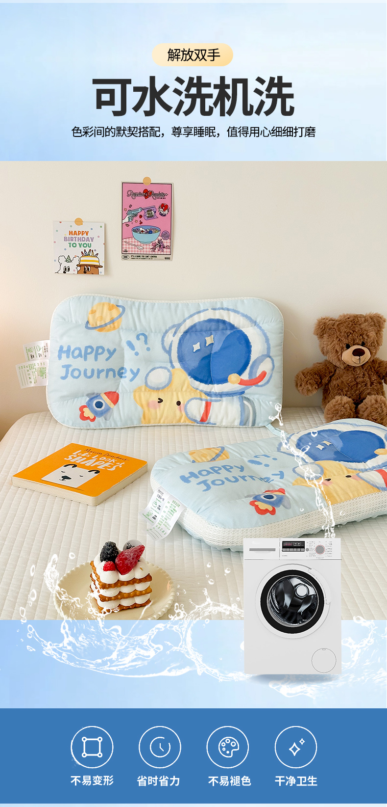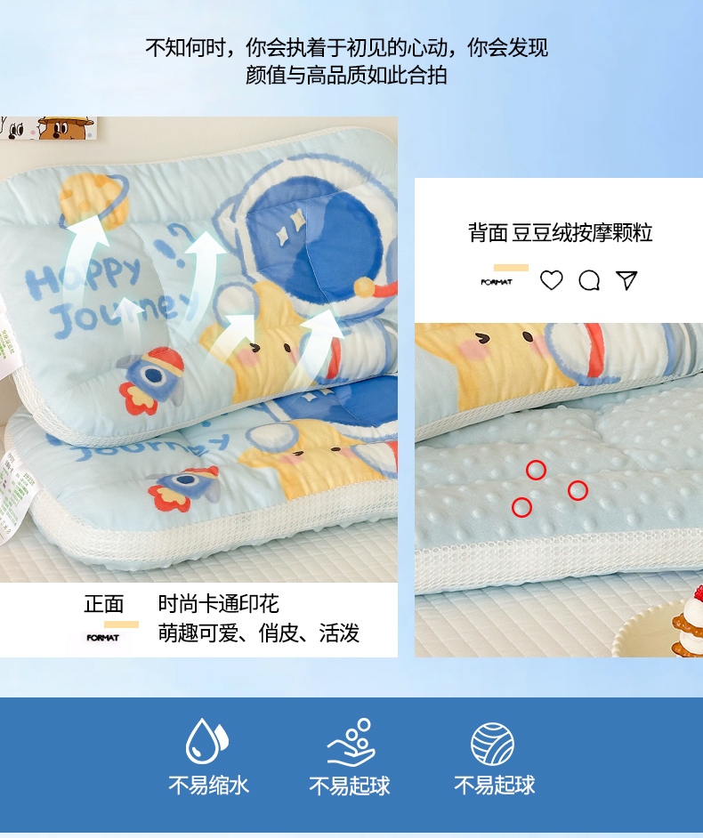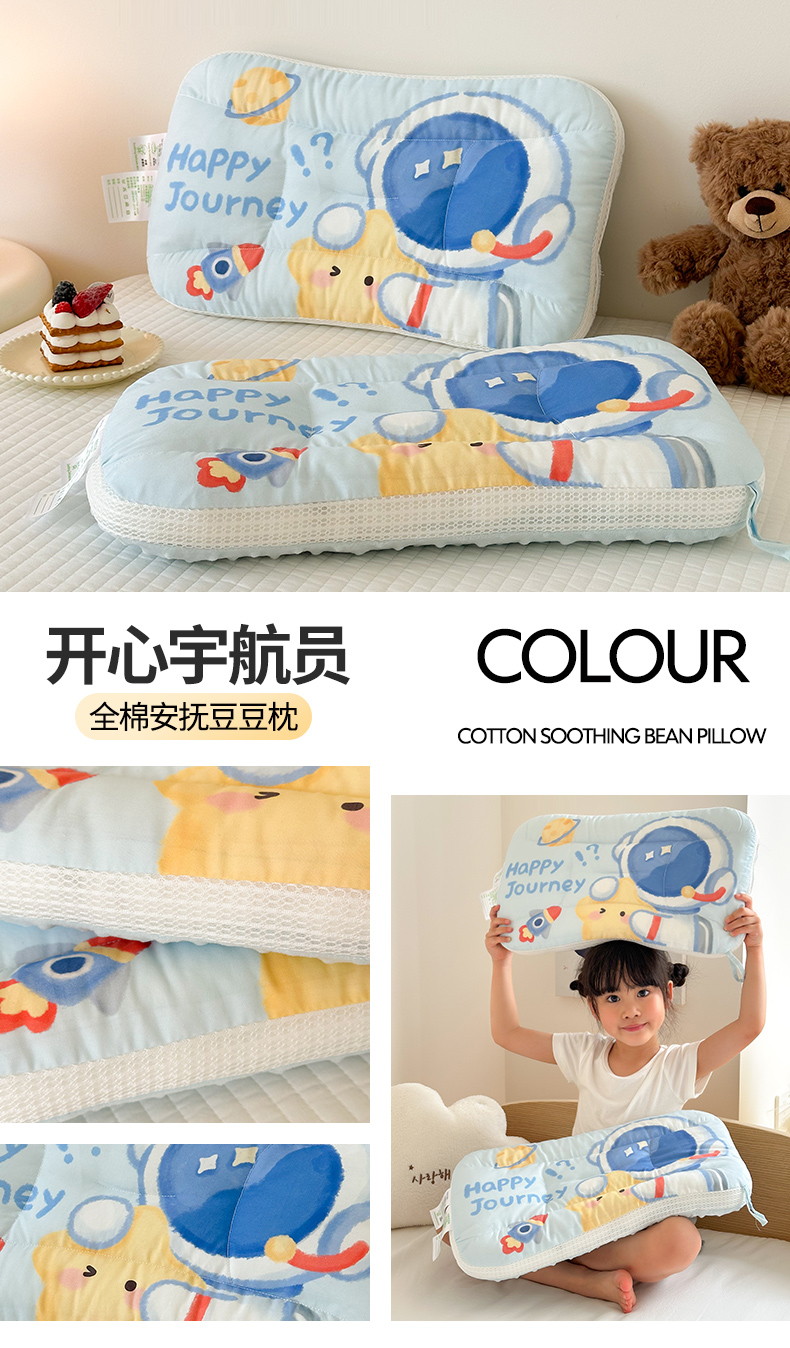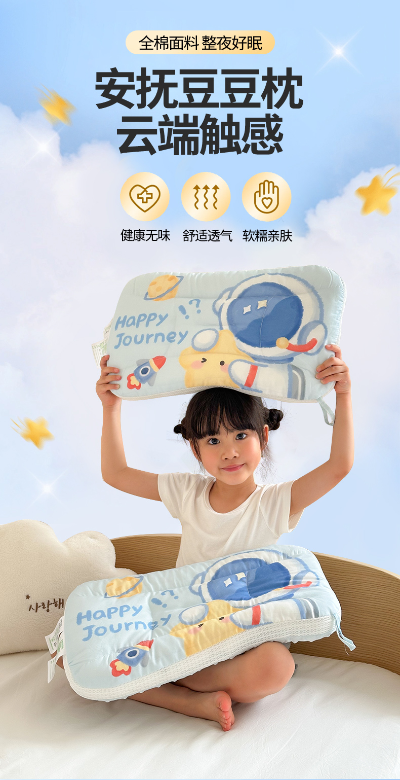 商品名称:嗨生活 2026新款冰豆豆枕芯大版卡通儿童枕芯幼儿园枕芯枕头枕芯 绒豆豆-开心宇航员