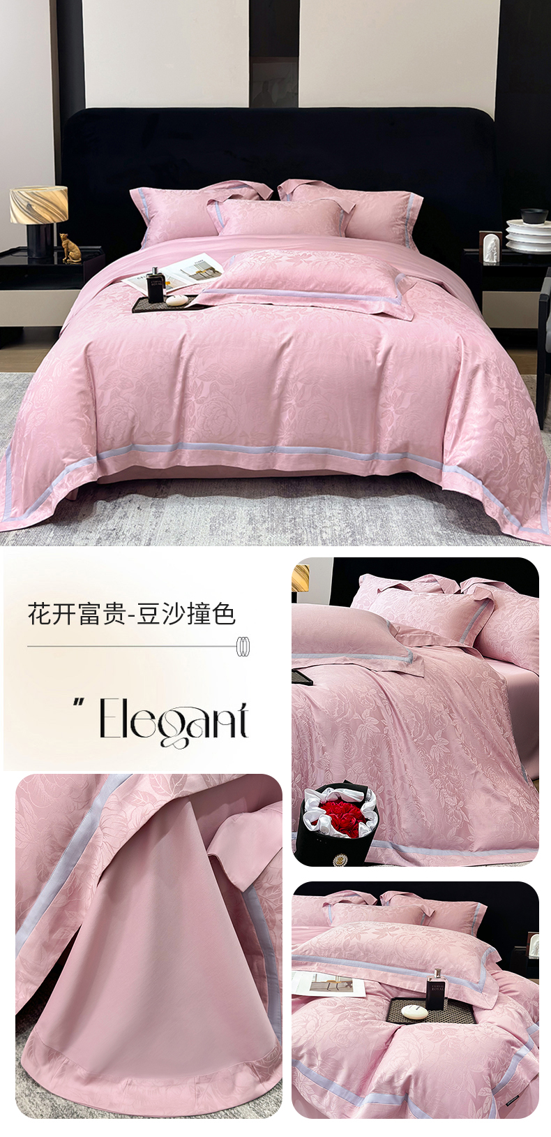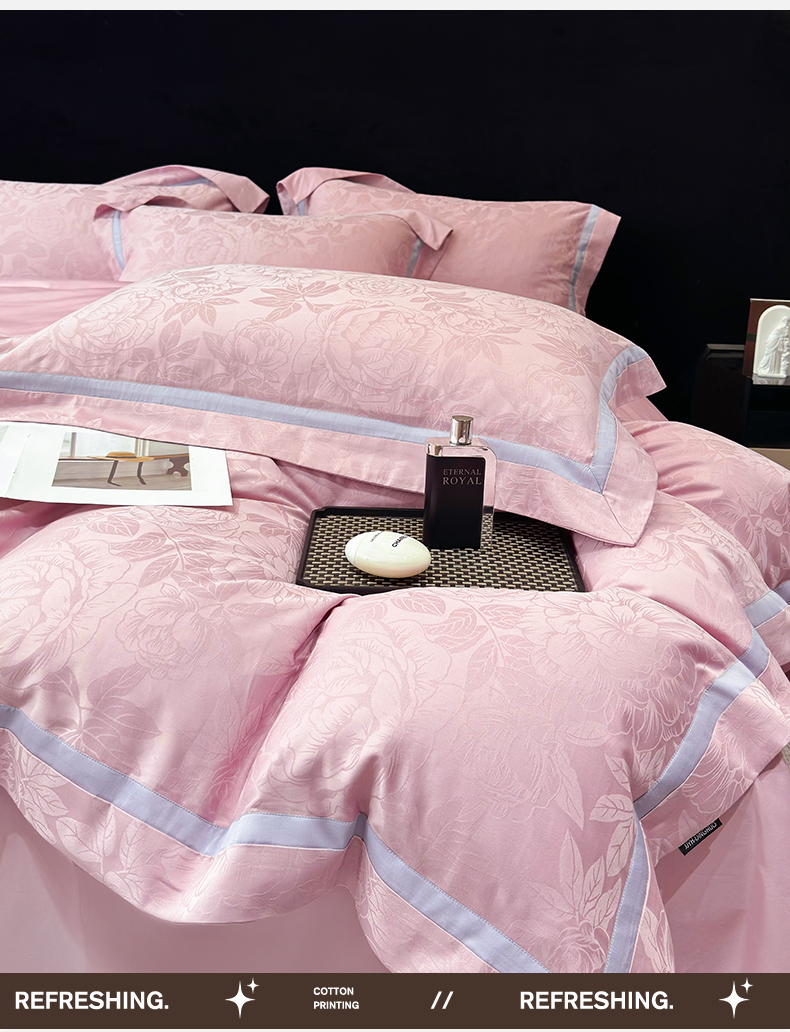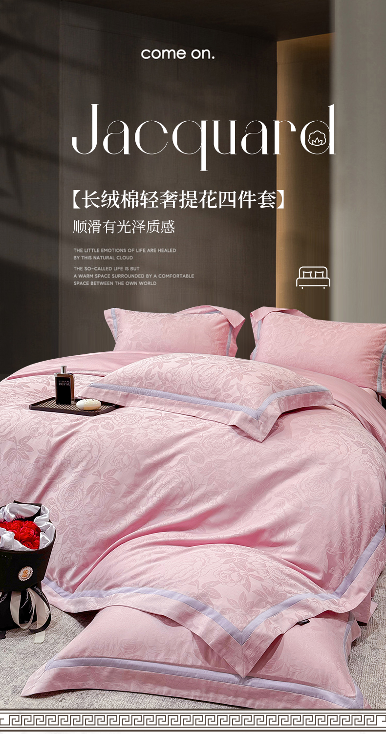 当前位置: 91家纺网 > 商品网购 > 床品套件 > 四件套 > 提花四件套 > 60支花开富贵长绒棉丝光全棉提花四件套 花开富贵-豆沙撞色
