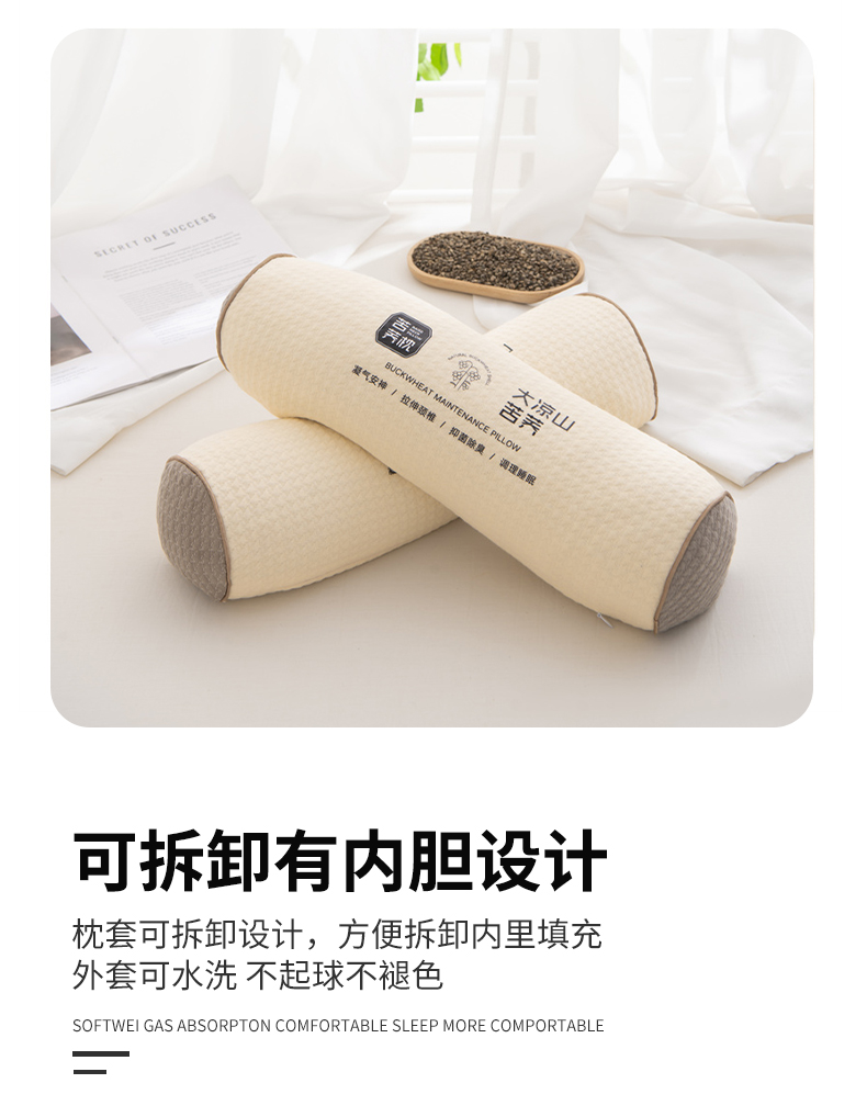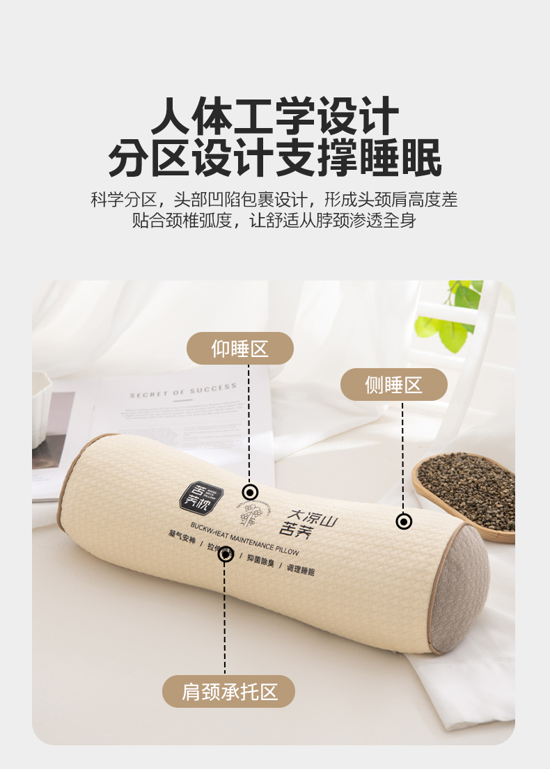 商品名称:(总)仁宇枕业 2026新款新品针织棉大凉山苦荞圆形颈椎护颈枕全荞麦壳腰枕头枕芯