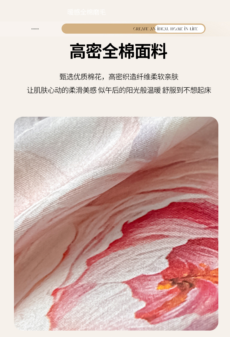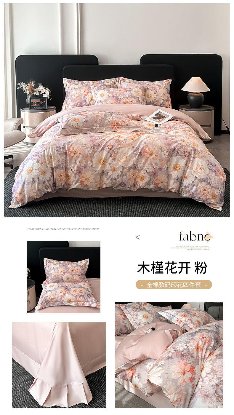 启航家居 2026新款全棉纯棉数码印花四件套(控价198) 晨花微露粉
