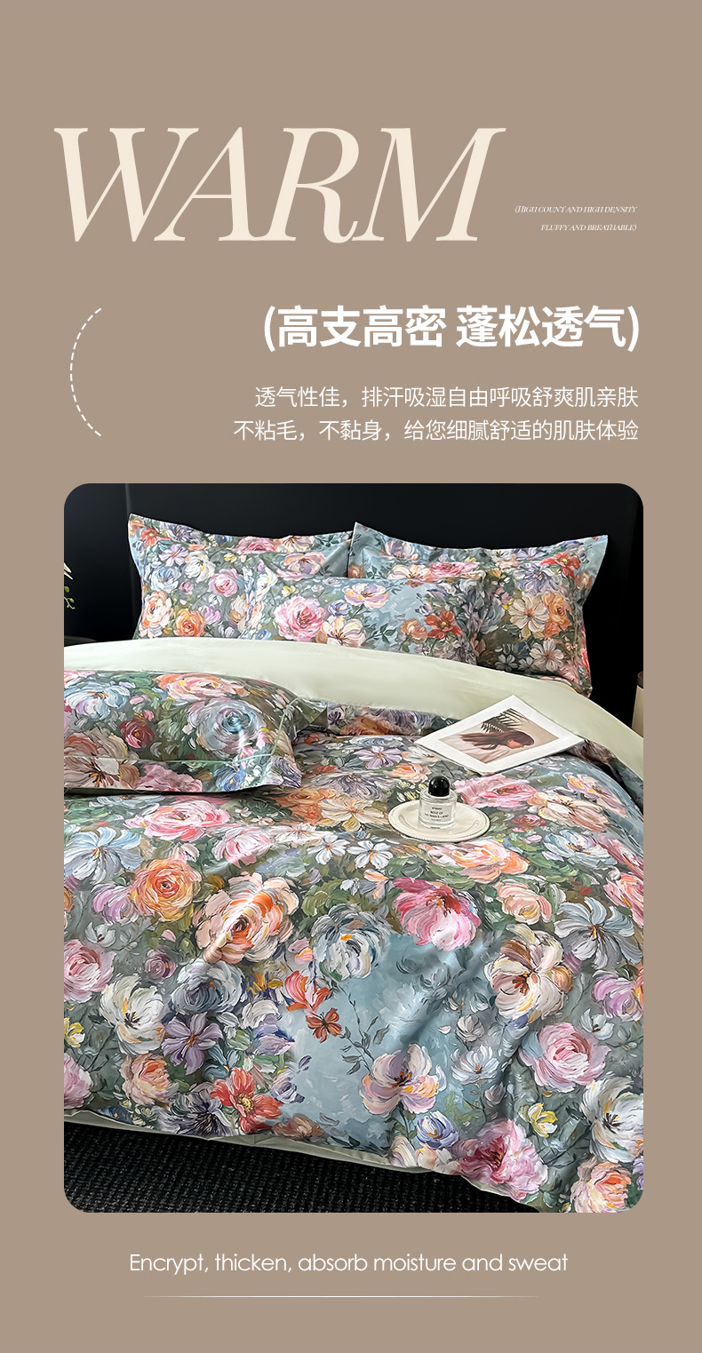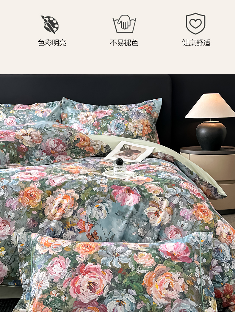 (总)启航家居 2025新款全棉铂金棉数码印花四件套,风香花倦,花的嫁纱,洛香忆梦绿,暮云春树灰,翩若惊鸿粉,普罗旺斯紫,新塞纳舞曲红,新塞纳舞曲紫