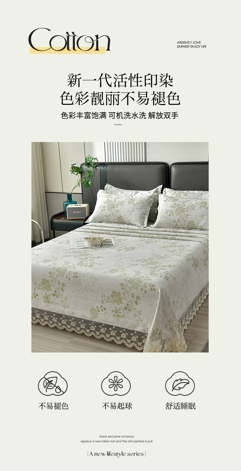 (总)星窝家纺 2025新款水洗棉花边床裙式多功能床盖三件套,经典豆绿,经典粉色,经典灰色,经典橘色,经典蓝色,经典奶白,经典紫色