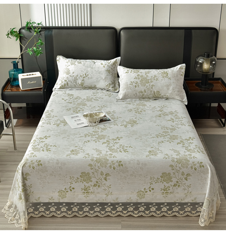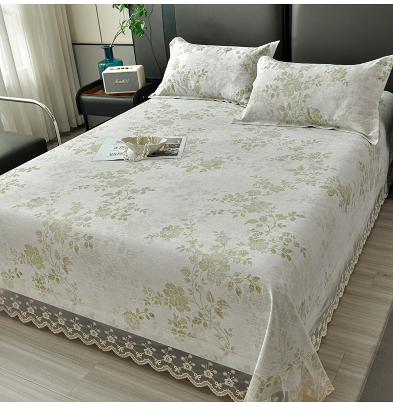 星窝家纺 2026新款花边老粗布凉席三件套 香颂花影-绿