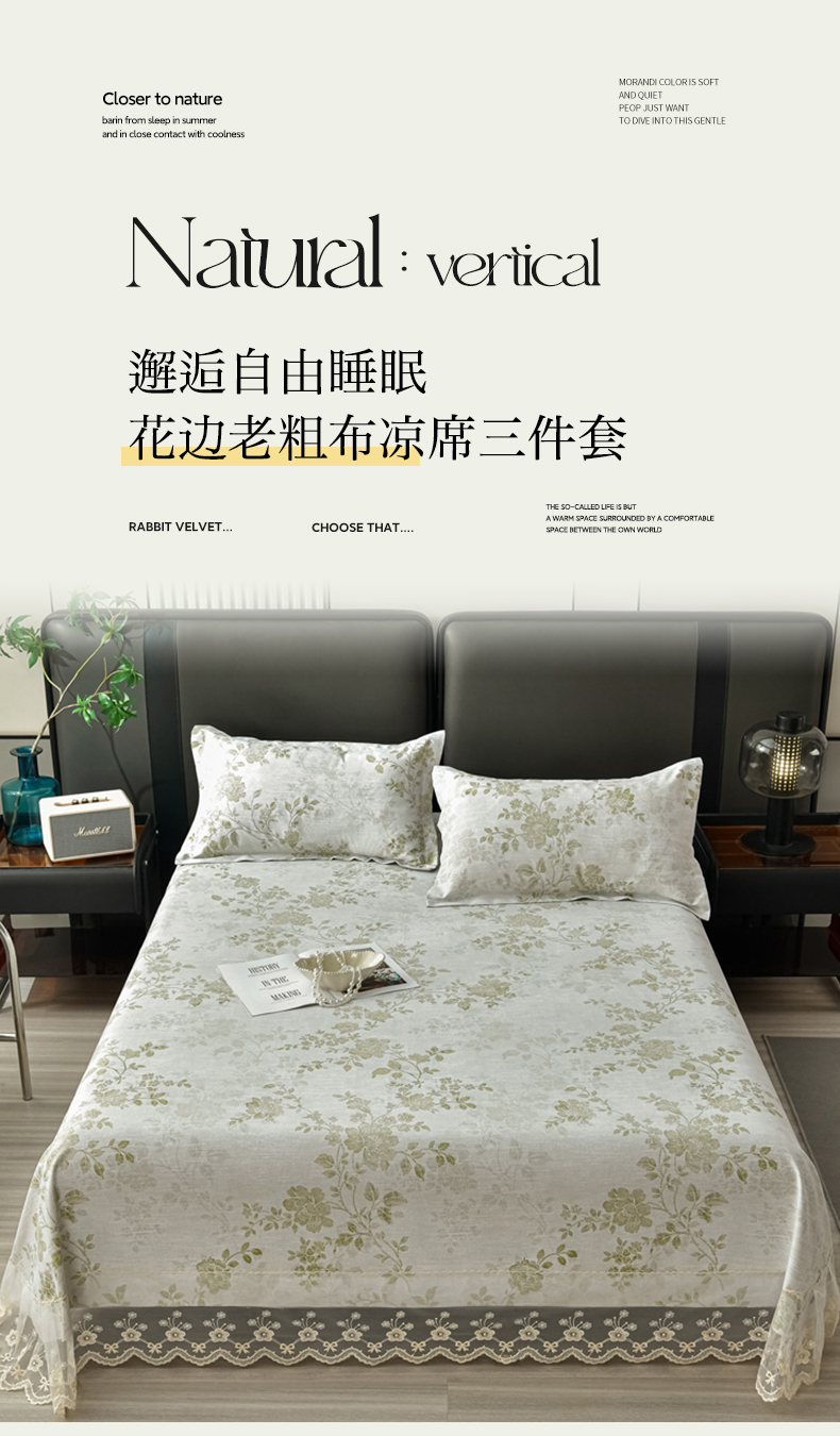 (总)星窝家纺 2026新款花边老粗布凉席三件套,半亩花田,花暖迎春,沁风花巷,浅灰雅格,山樱漫语-灰,绮梦韵彩,嘉百丽-绿,宛若黎光-绿,花叶扶苏-绿,花叶扶苏-灰,青春活力-蓝,微澜,春旭日-灰,香颂花影-绿,春风里-绿,初恋心语,星辰-灰,潮流字母-灰,半夏花语,若瑄,烟紫花影,阳春之歌,樱桃格-绿