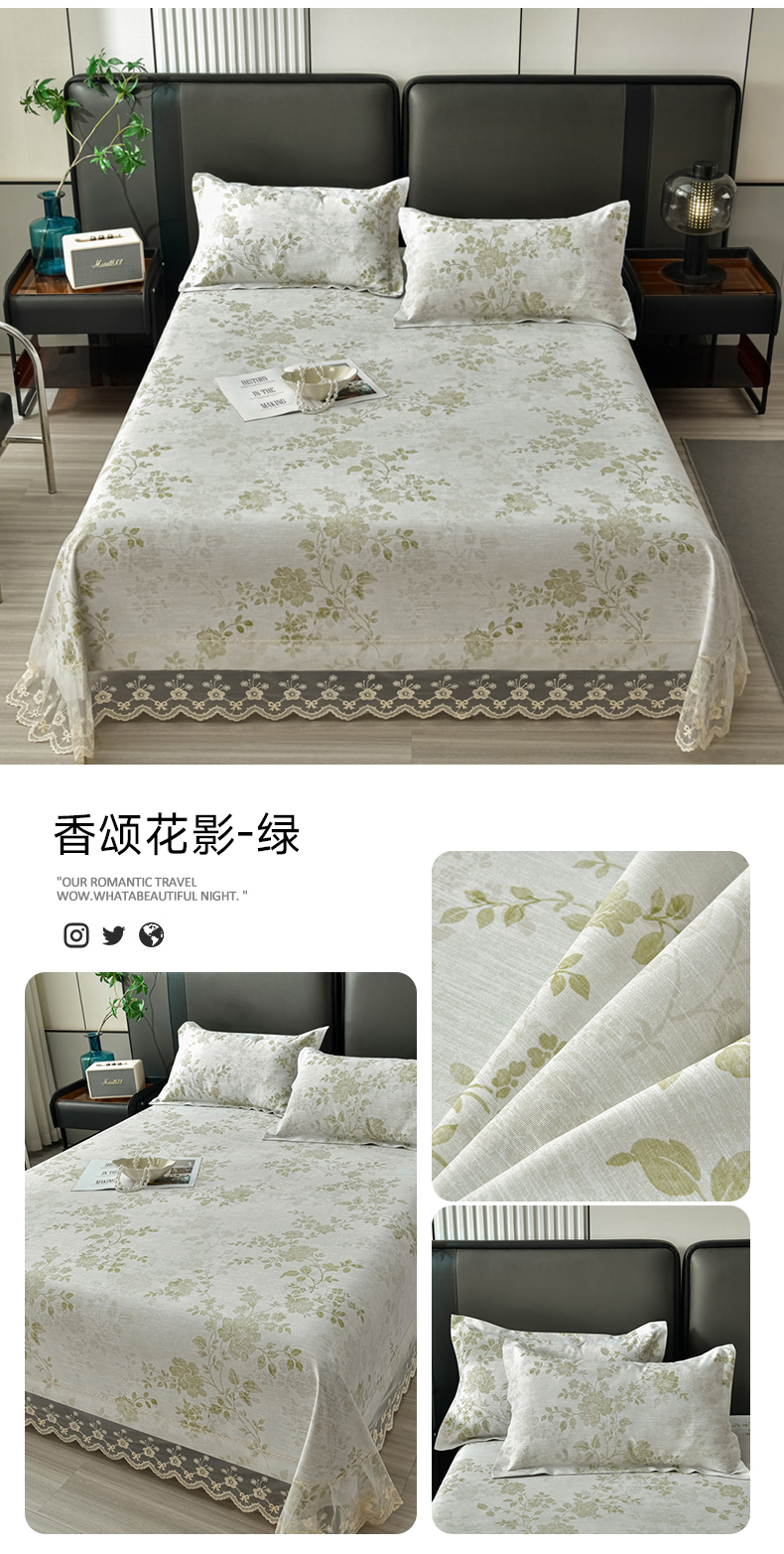 商品名称:星窝家纺 2026新款花边老粗布凉席三件套 香颂花影-绿