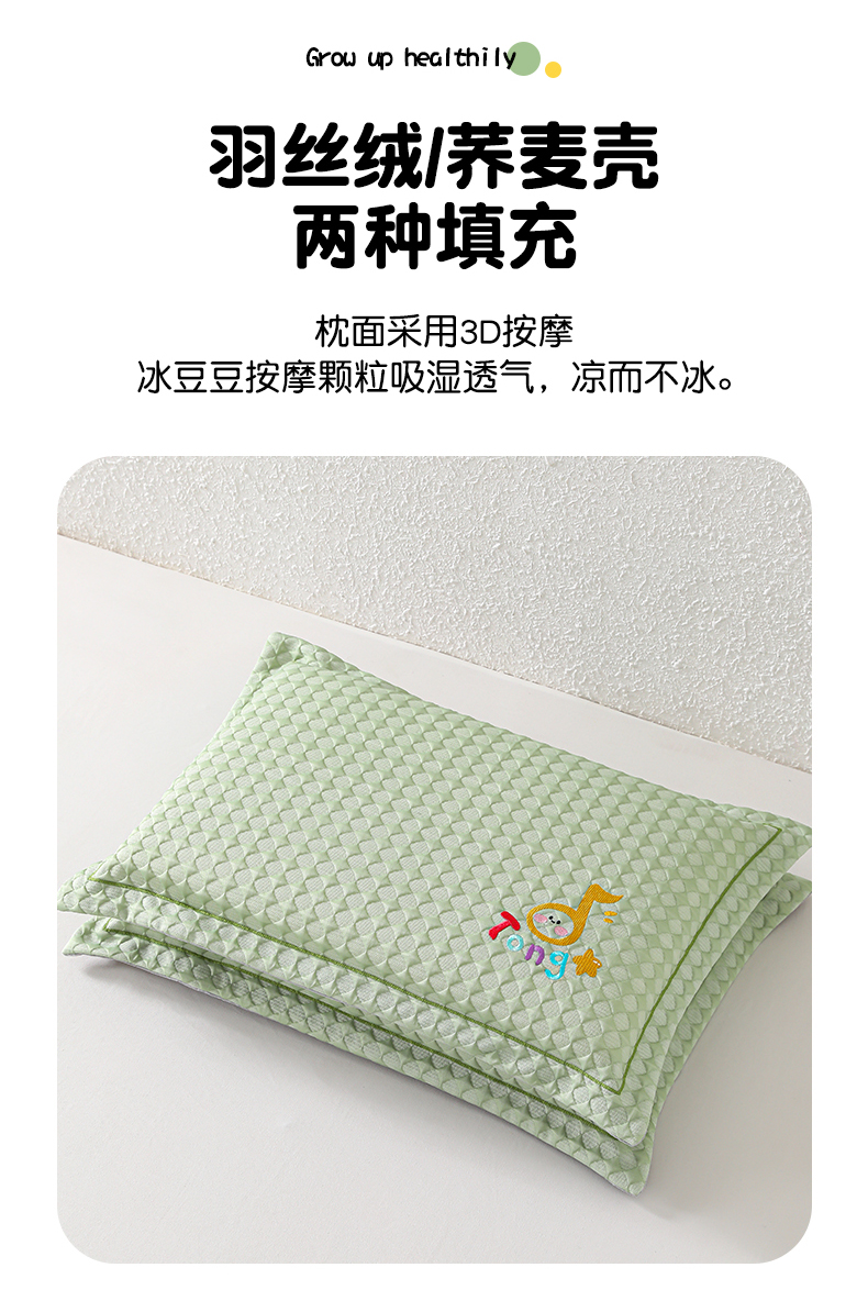当前位置: 91家纺网 > 商品网购 > 枕头/枕芯/保健枕/颈椎枕 > 枕头枕芯 > 织布人 2026新款枕芯夏季凉感可拆洗幼儿园儿童枕头学生宿舍专用枕套+枕芯 音乐凉感豆儿童枕-绿色