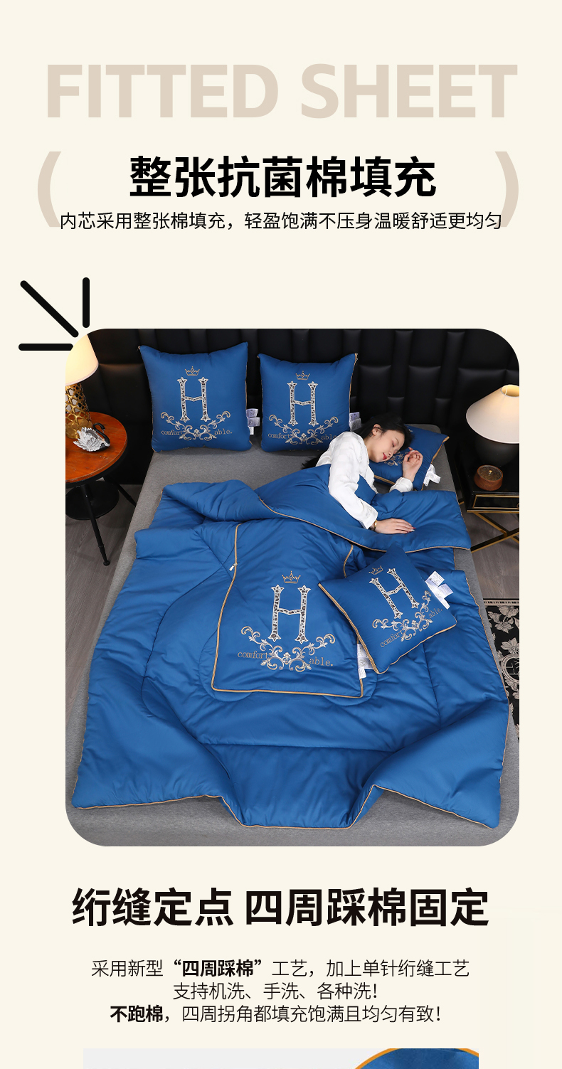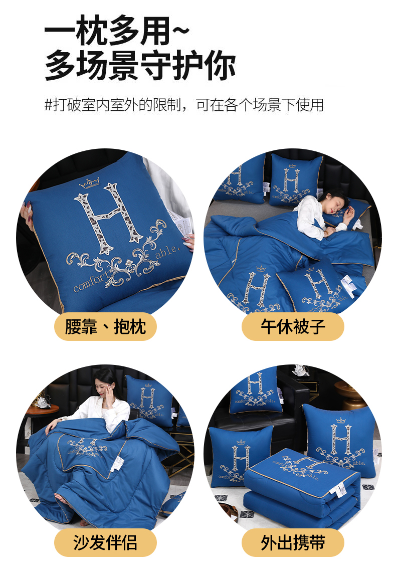 (总)照世家纺 2026新款全棉安逸H款抱枕被,孔雀蓝,咖色,深灰,浅灰,大红