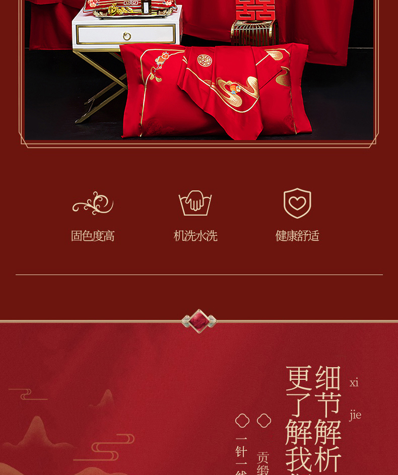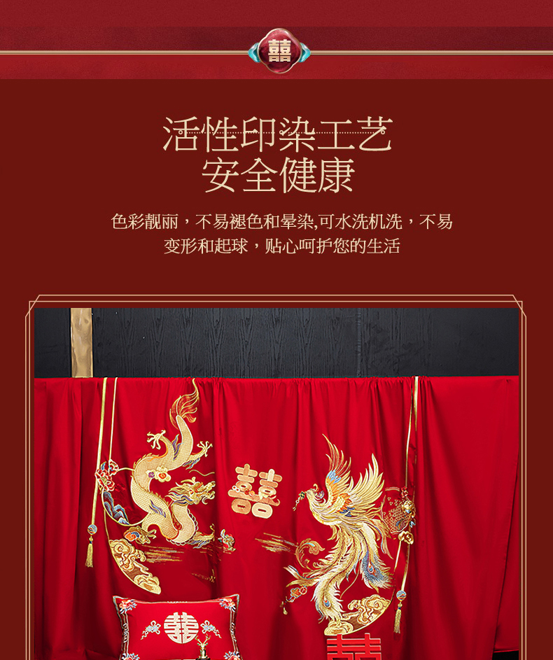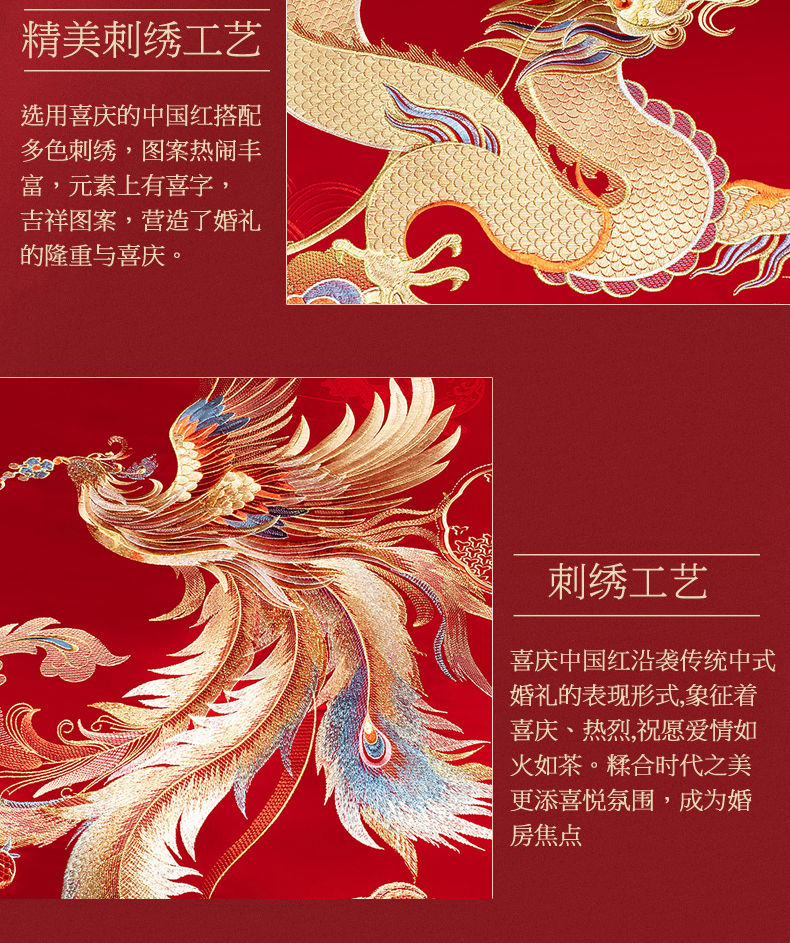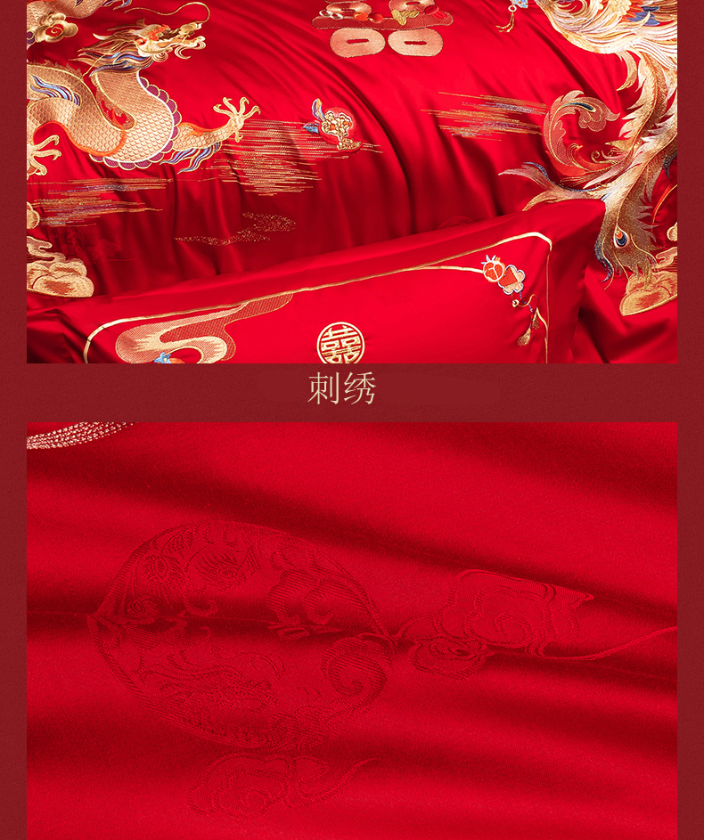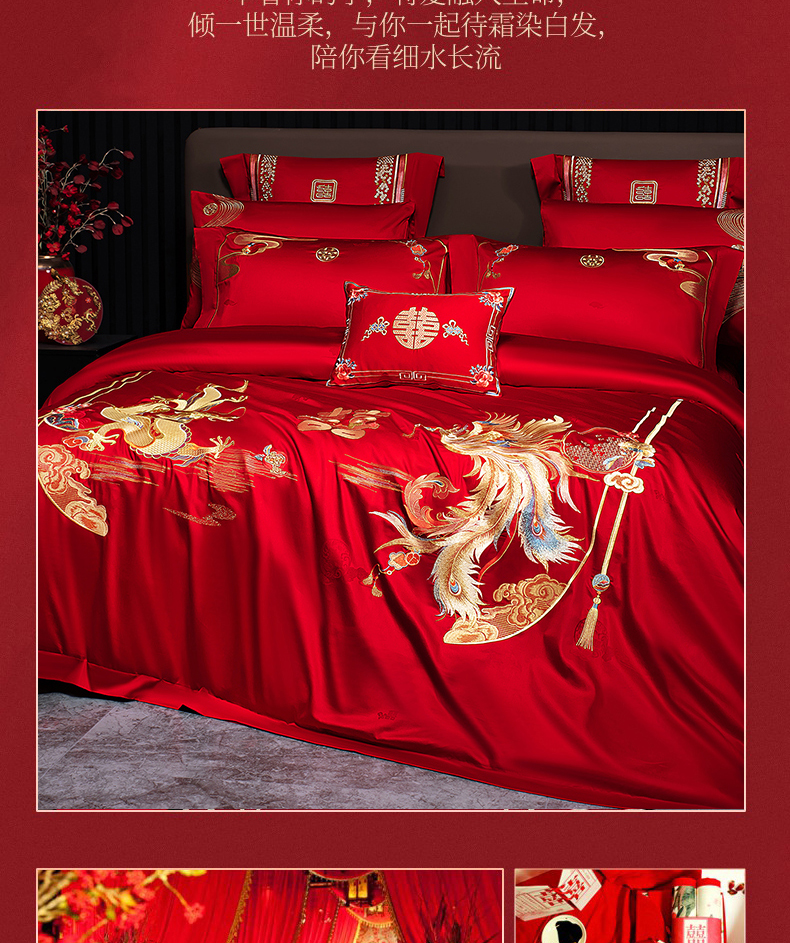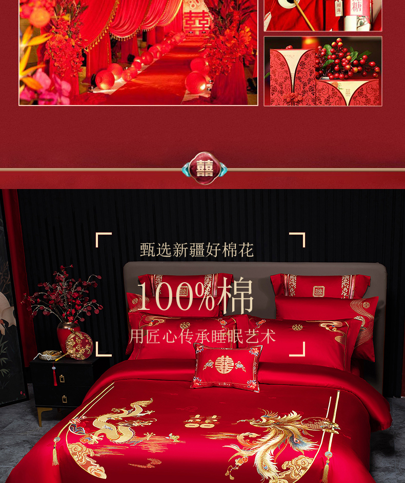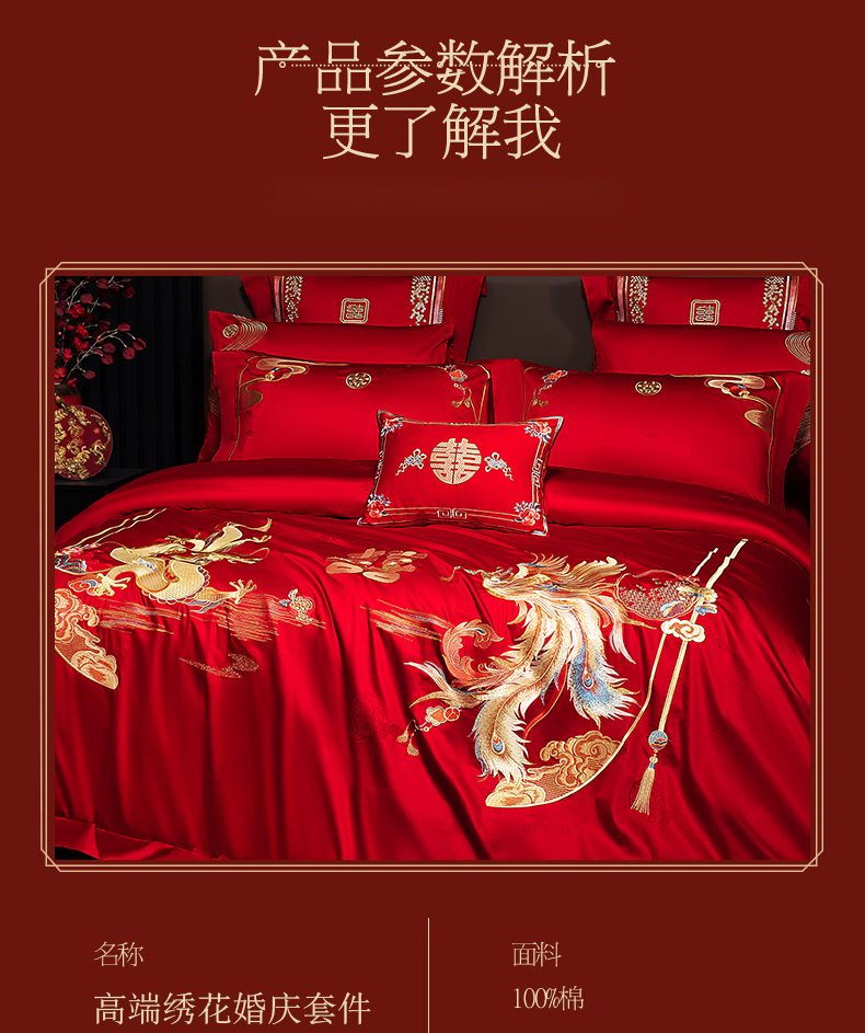 当前位置: 91家纺网 > 商品网购 > 床品套件 > 四件套 > 婚庆四件套 > 蒂爵 2026年重绣性价比款长绒棉提花全棉纯棉绣花婚庆四件套多件套大红色刺绣结床上用品 龙凤喜韵