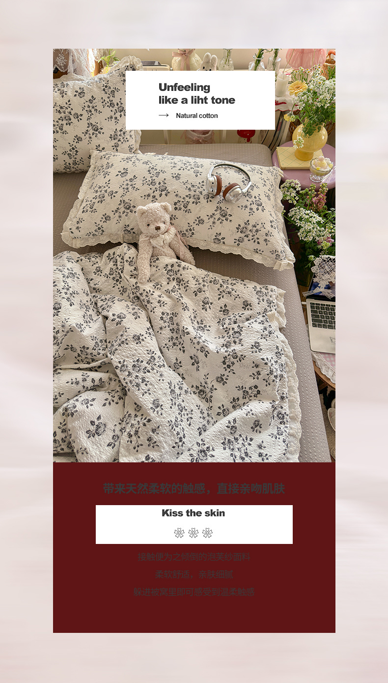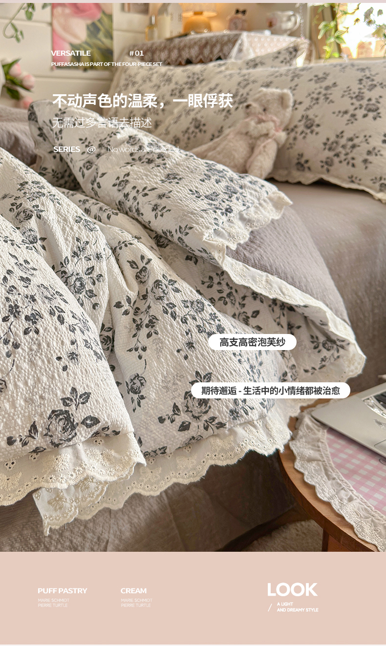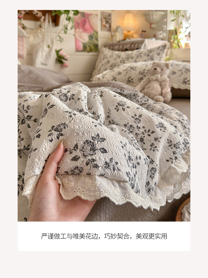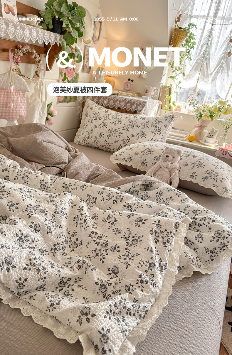 商品名称:初念 2026新款泡芙纱全花边夏被四件套 花笺-只闻花香