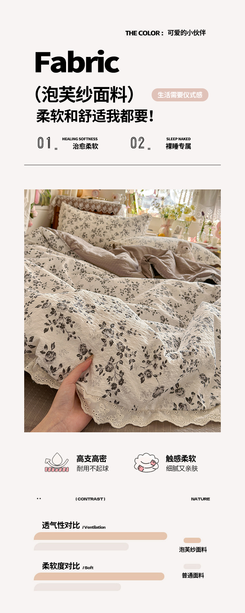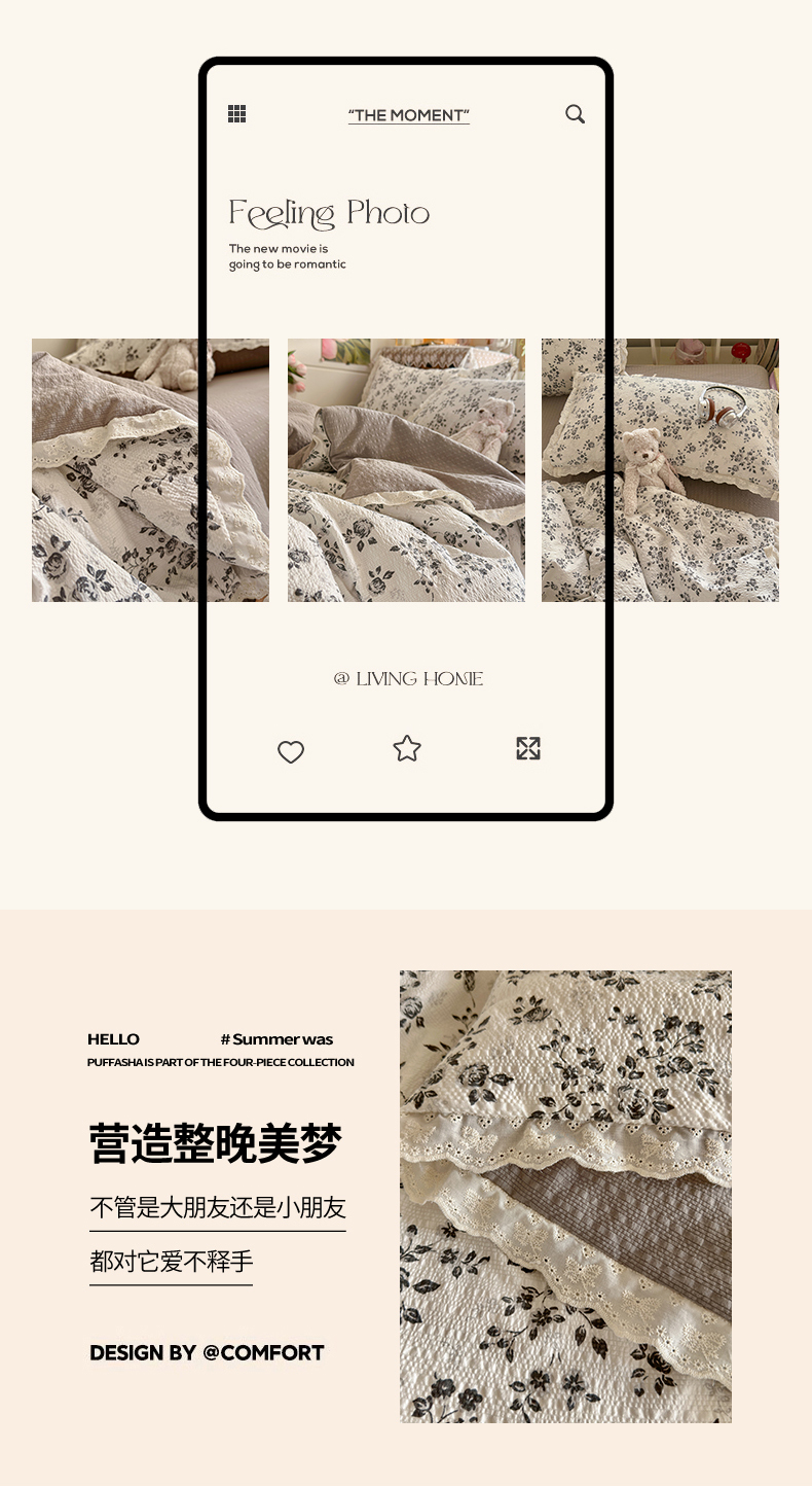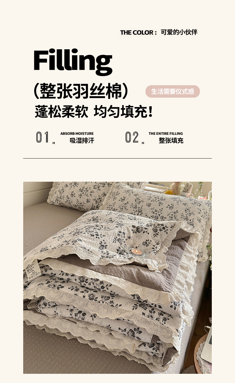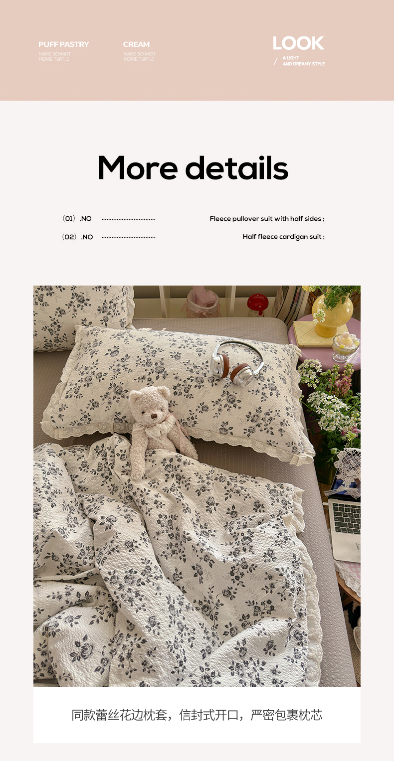 商品名称:初念 2026新款泡芙纱全花边夏被四件套 花笺-只闻花香