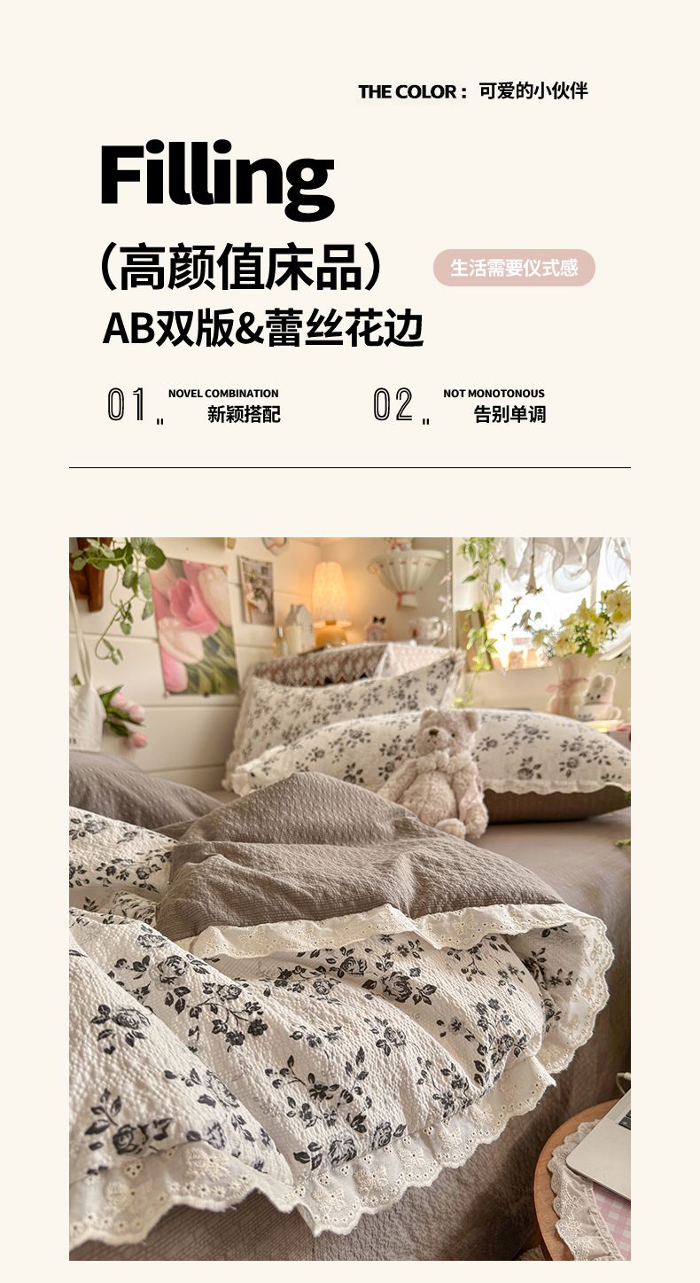 (总)初念 2025新款亲肤舒适双层纱云感纱小花边四件套-拾光,拾光-芭比兔,拾光-复古浪漫,拾光-花丛萌兔,拾光-花丛女孩,拾光-少女象,拾光-狮子唱片,拾光-思念女孩,拾光-星眠云野