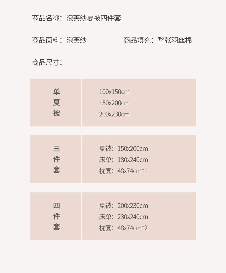200*230cm夏被床单四件套