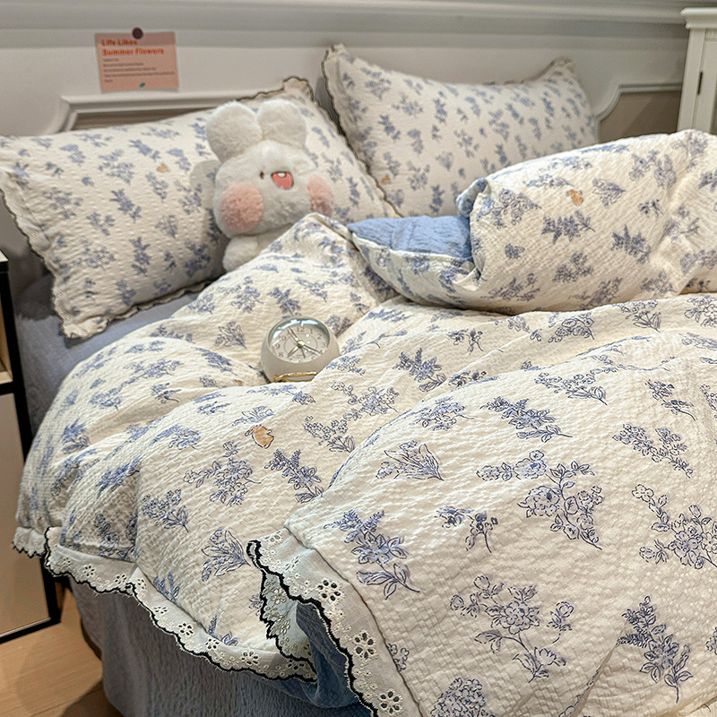(总)一比一家纺 2026新款彩色全棉花边木棉皱皱纱四件套,阿吉豆,初心粉,初心蓝,扶摇,赫本,花间女孩,花漫漫,花蜜,阑珊,罗卡,奶芙喵,甜心格格,午后花园,小马驹,邂逅,野餐兔,樱花季,悠然,紫烟