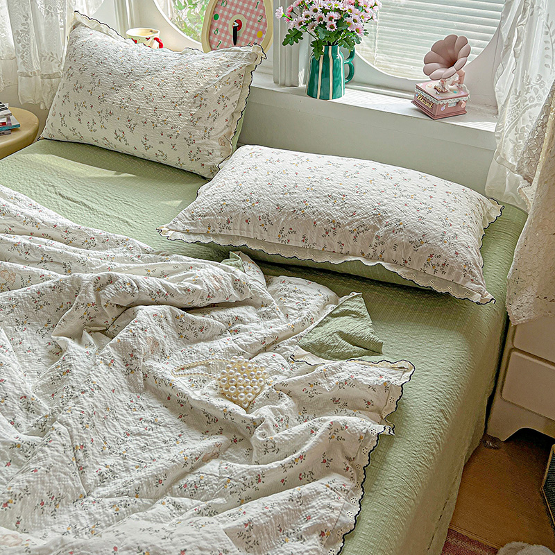 一比一家纺 2026新款法式花边泡芙纱夏被四件套 青禾