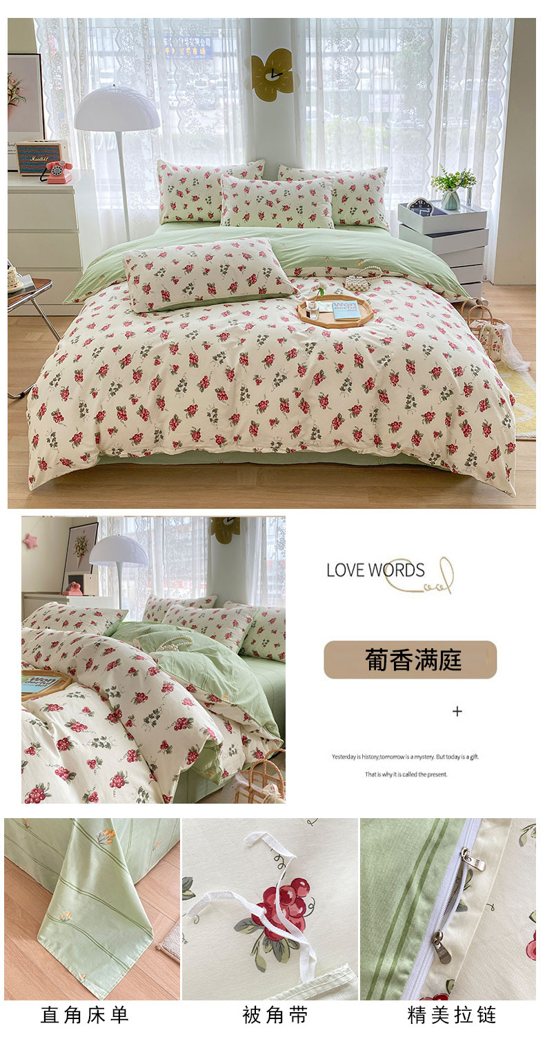 商品名称:宇彬家纺 2026直播新款13372A类全棉纯棉印花单双人被套喷气小清新简约热款学生被罩 心雅
