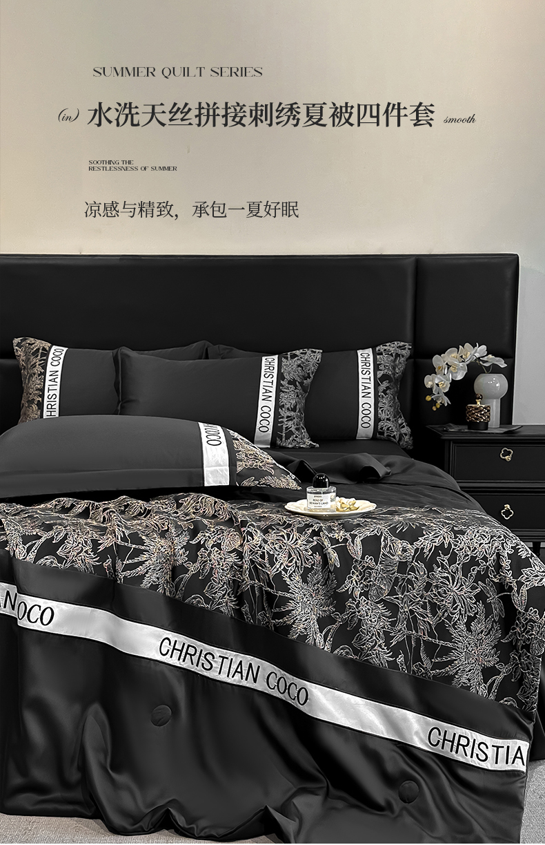 当前位置: 91家纺网 > 商品网购 > 床品套件 > 四件套 > 其它四件套 > 苏源家居 2026新款轻奢水洗天丝刺绣拼接浮雕夏被夏凉被空调被四件套-梦境 梦境-耀黑