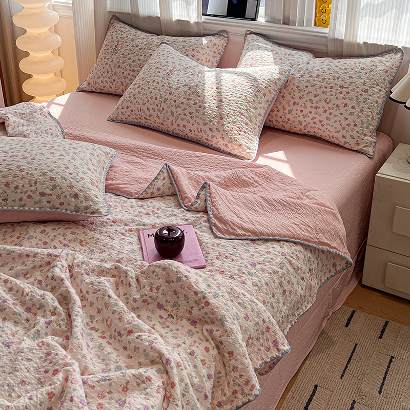 (总)一比一家纺 2026新款彩色花边木棉皱皱纱夏被四件套,阿吉豆,初心粉,初心蓝,扶摇,赫本,花间女孩,花漫漫,阑珊,罗卡,奶芙喵,甜心格格,午后花园,小马驹,邂逅,野餐兔,樱花季,悠然,紫烟