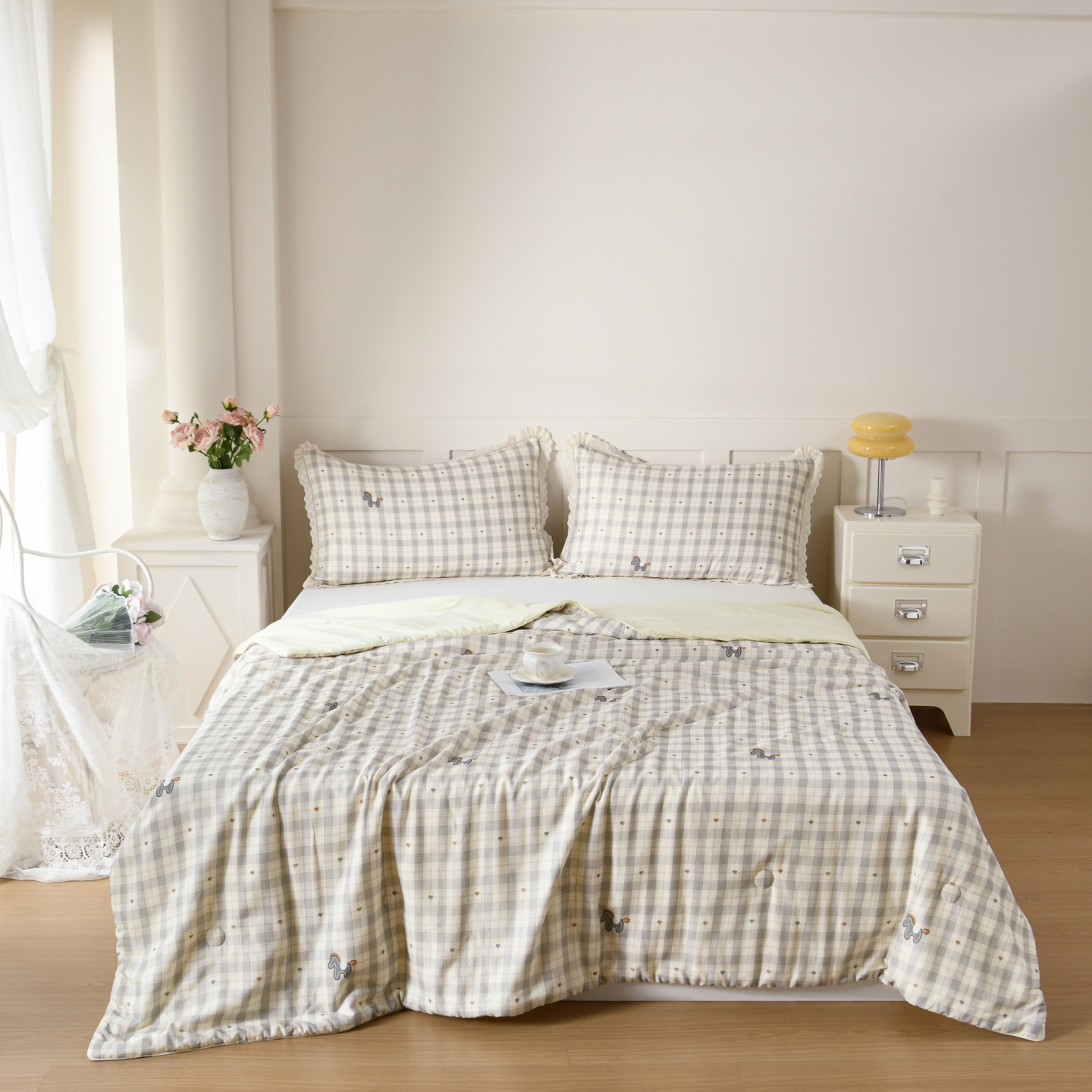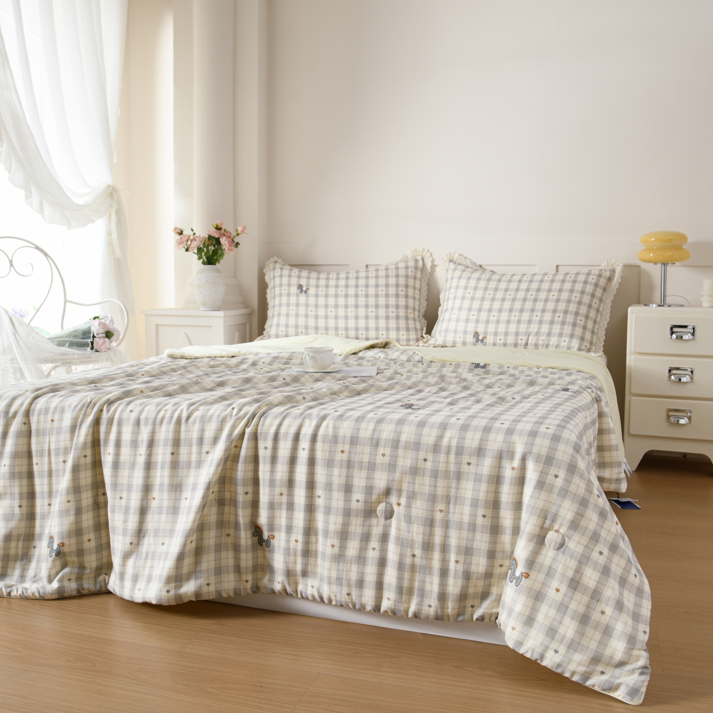 (总)馨宜 2025水柔砂洗全棉大豆被(免套被套)二合一五件套 全棉冬被春秋被子母被纤维被春秋被四件套,巴黎午后,光影絮语,花样年华,童梦奇缘,莫奈花园