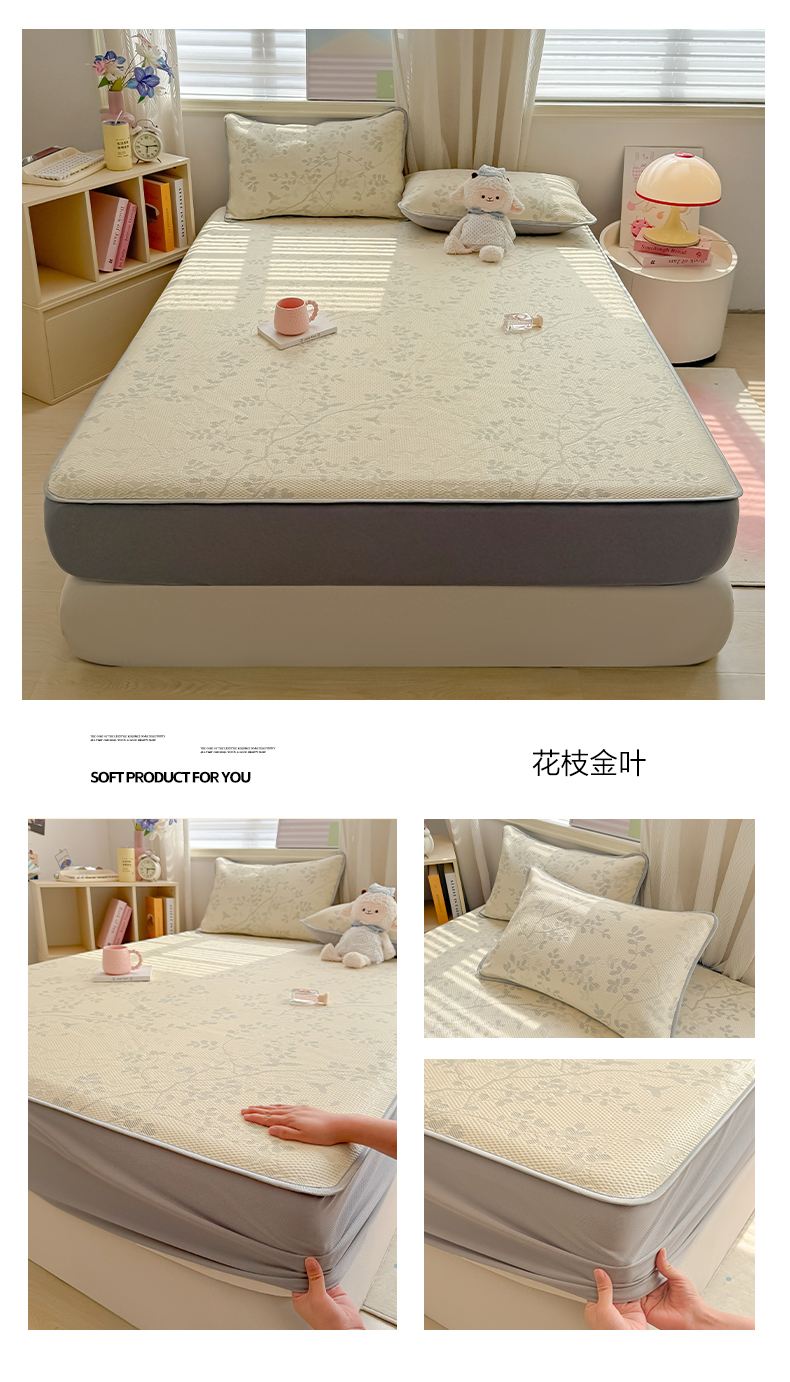 • 91家纺网 家纺一手货源 找家纺 多乐家纺 206新款冰豆豆防水凉感软席凉席席子 小玫瑰-床笠款