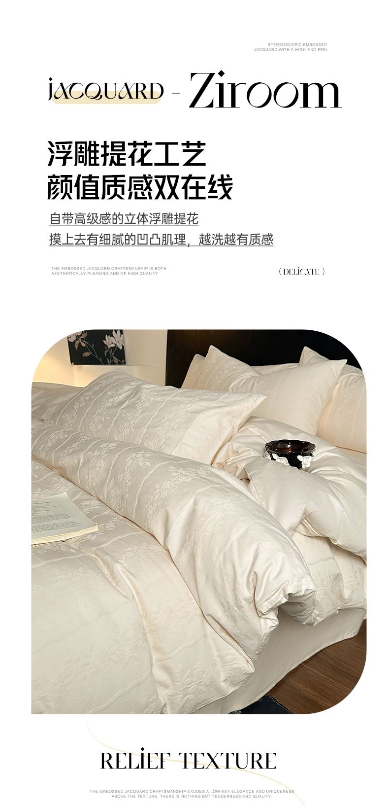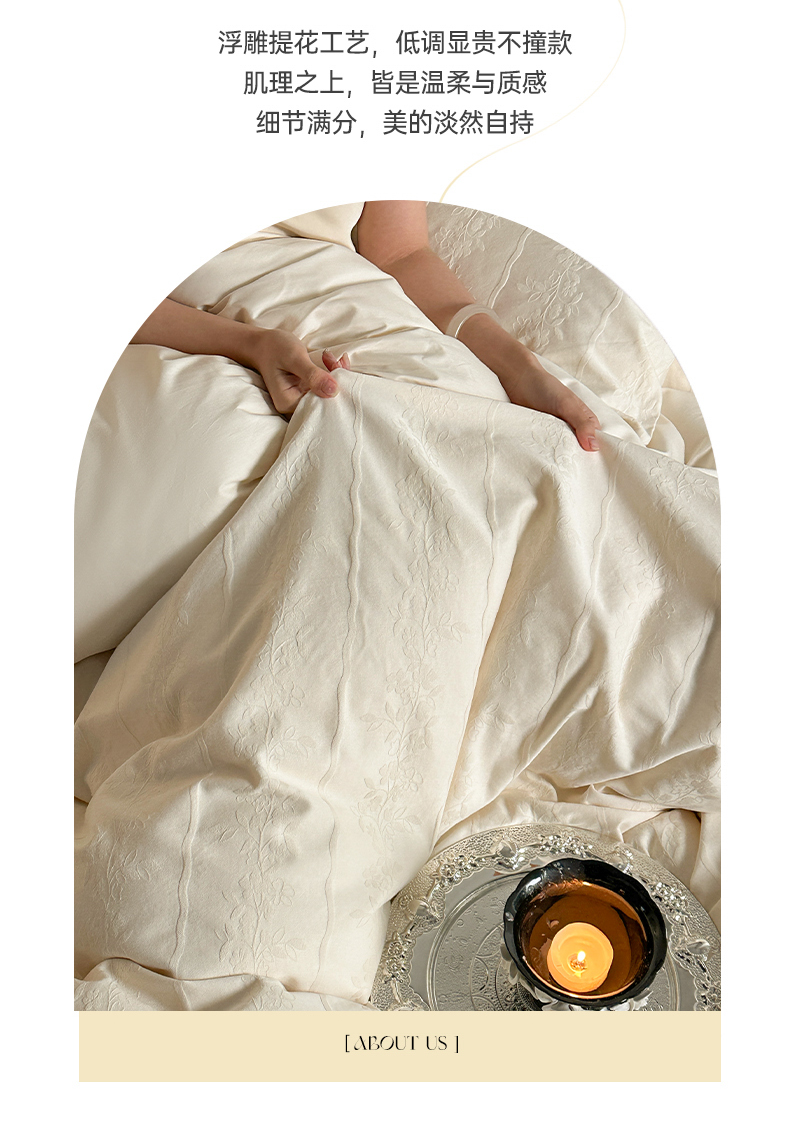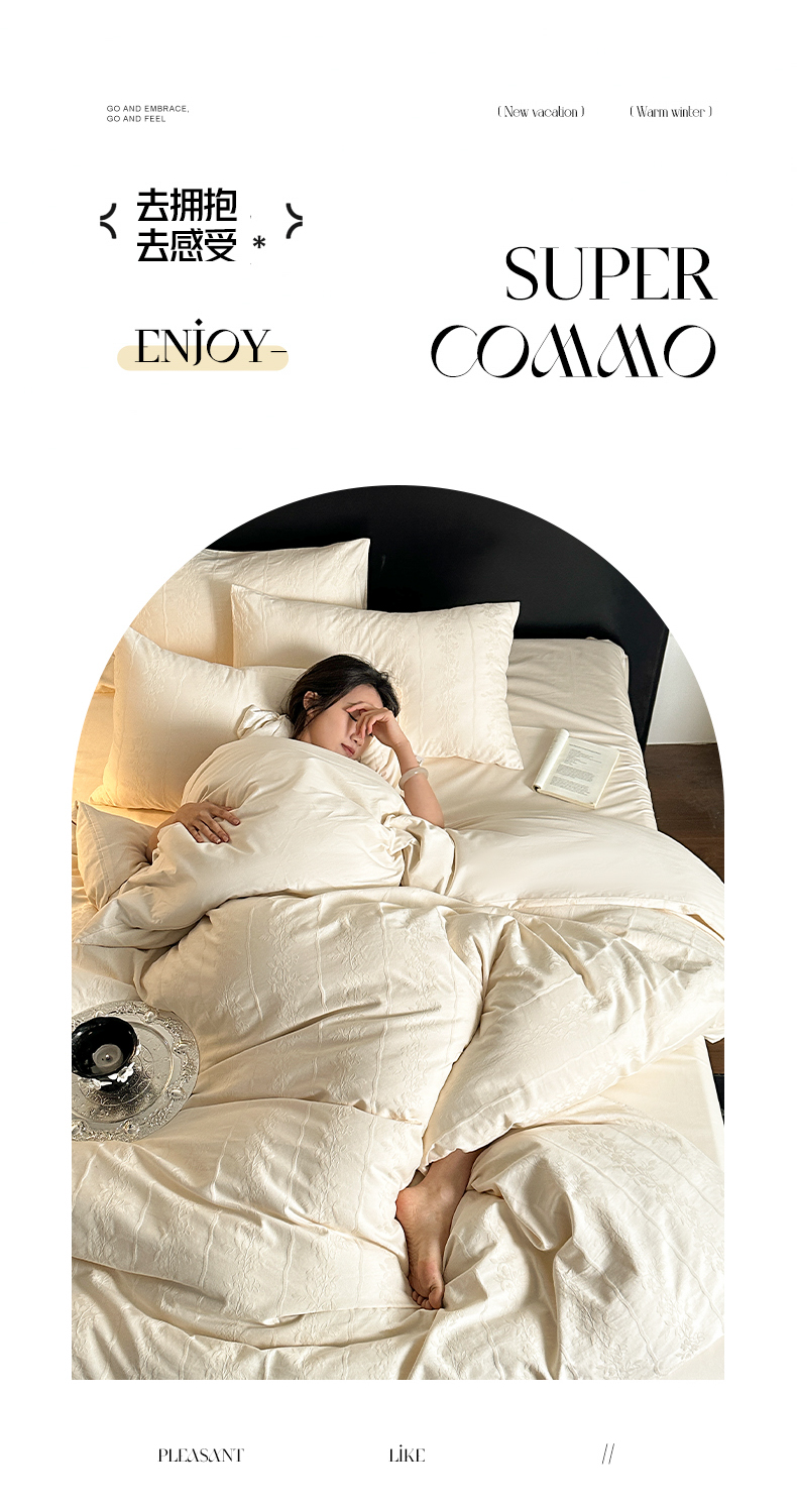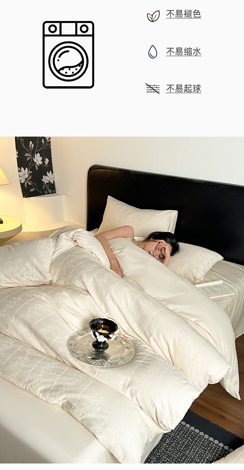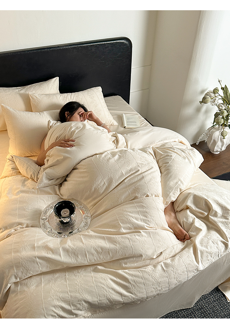 佰亿莱 2026新款新疆长绒棉60支水洗提花四件套 米白锦纹