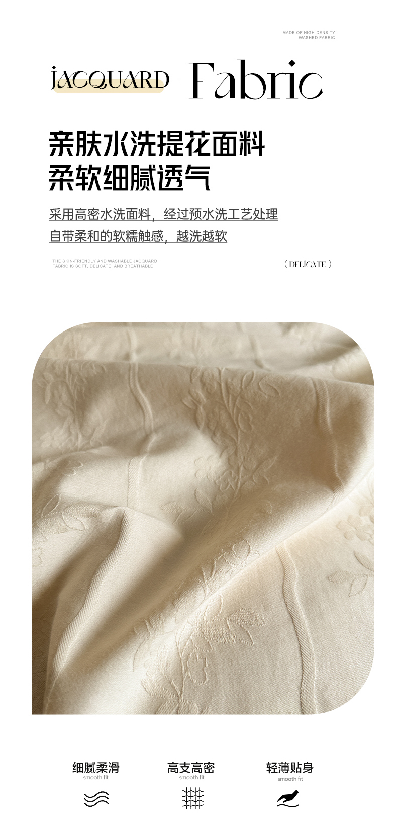 商品名称:佰亿莱 2026新款新疆长绒棉60支水洗提花四件套 米白锦纹