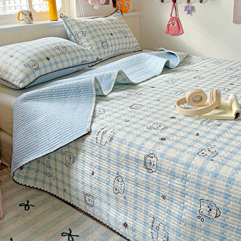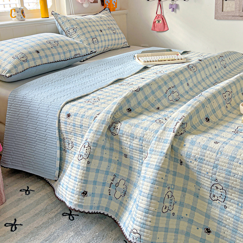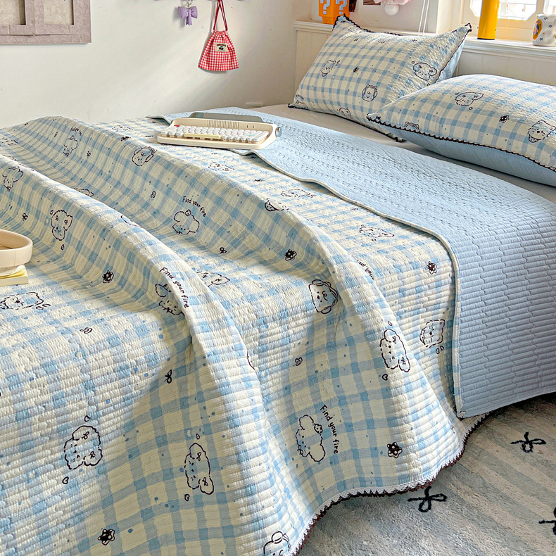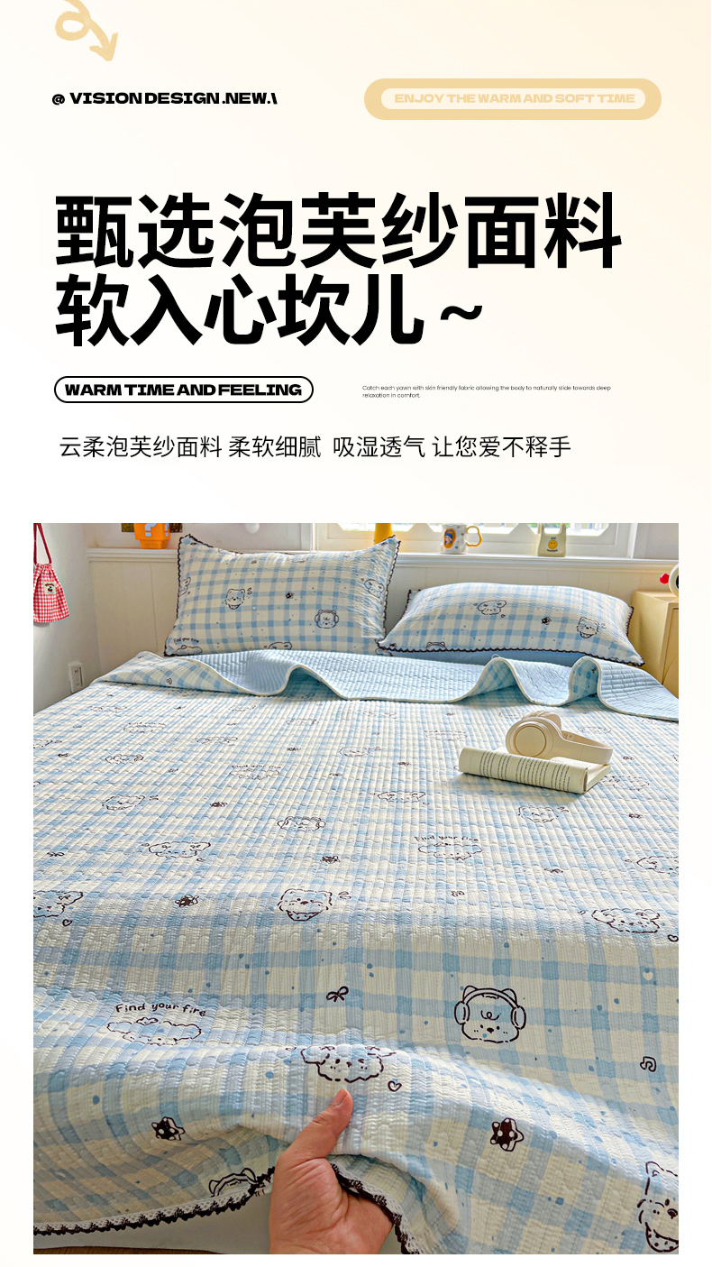 商品名称:恒尚居 2026新款A类泡芙纱床盖四套件泡芙棉双层纱小花边床垫床褥 兰格奶狗小花边