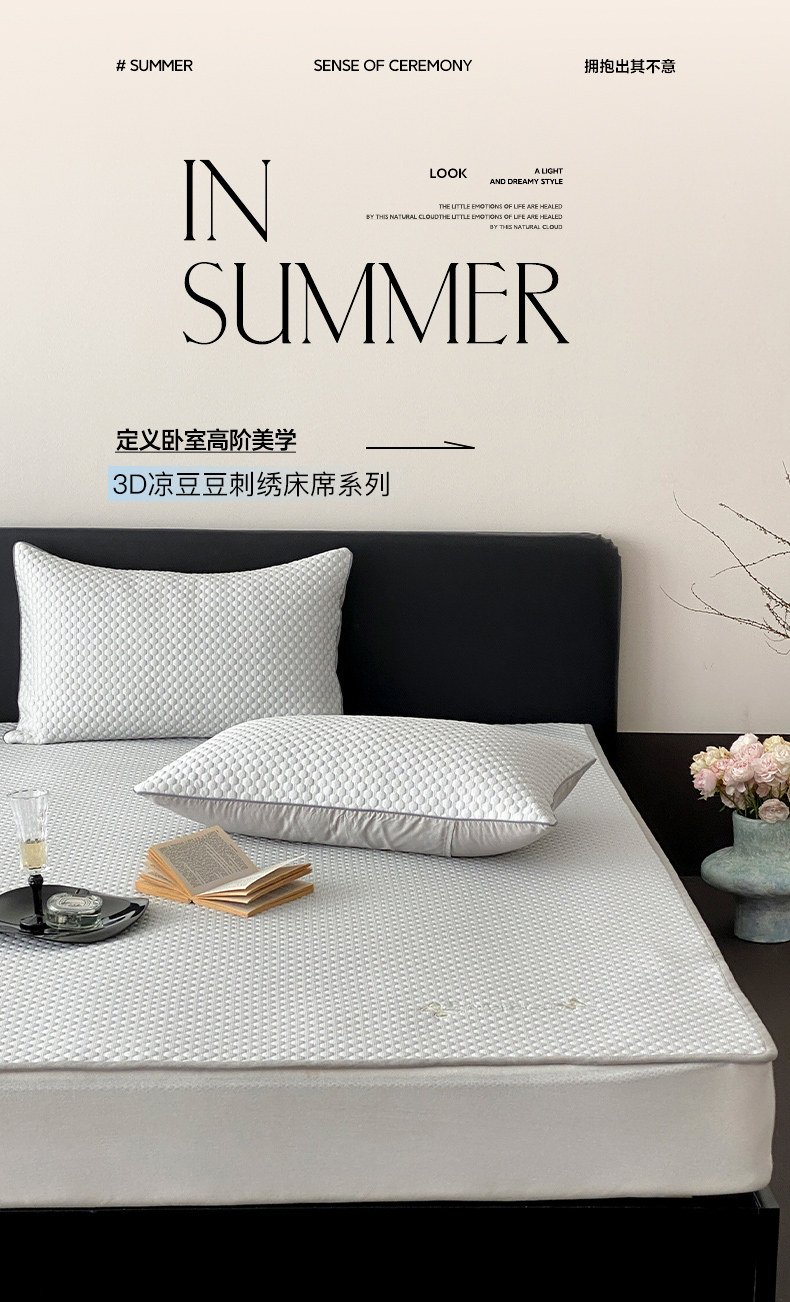 (总)云栖家居 2026新款春夏凉豆豆PE冰感凉席席子全棉宽边软平席-铃兰,铃兰-粉,铃兰-灰,铃兰-蓝