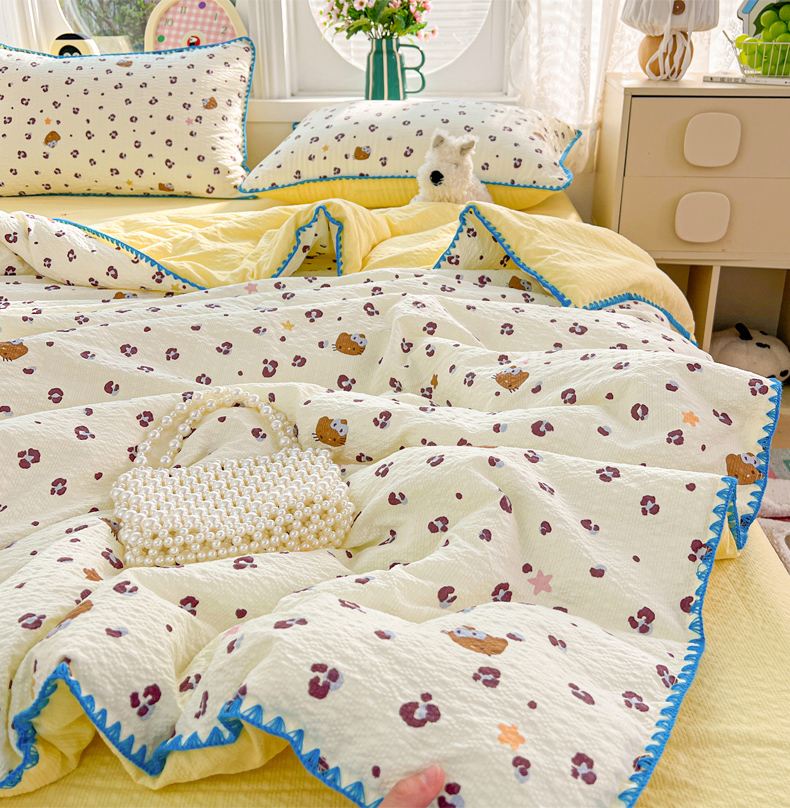 (总)恒尚居 2026新款A类泡芙纱贝壳边夏被四套件空调被三角针绣边夏被夏被四件套,【波点奶芙】小花边,【彩虹木马】小花边,【费尔岛小狗】小花边,【粉糖泡泡猫】小花边,【兰格奶狗】小花边,【奶黄星星人】小花边,【细格木马】小花边,【阳光条纹】小花边,【字母喵喵】小花边