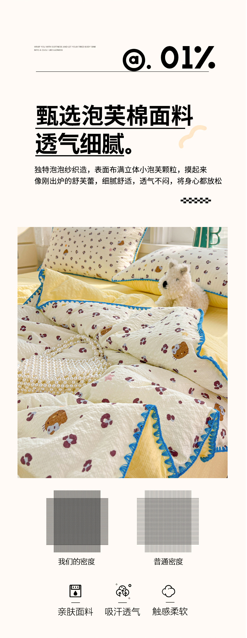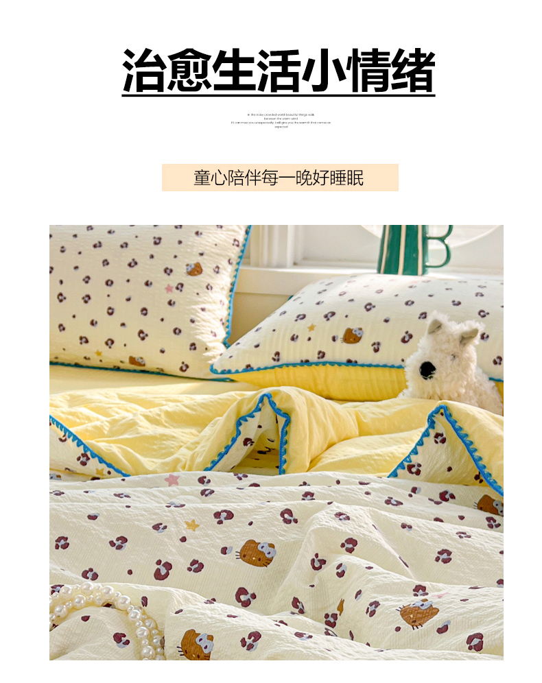 (总)恒尚居 2026新款A类泡芙纱床盖四套件泡芙棉双层纱小花边床垫床褥,波点奶芙小花边,彩虹木马小花边,费尔岛小狗小花边,粉糖泡泡猫小花边,兰格奶狗小花边,奶黄星星人小花边,细格木马小花边,阳光条纹小花边,字母喵喵小花边