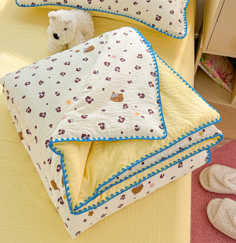 商品名称:恒尚居 2026新款A类泡芙纱贝壳边夏被夏凉被四件套空调被三角针绣边 【奶呼小猫】贝壳边