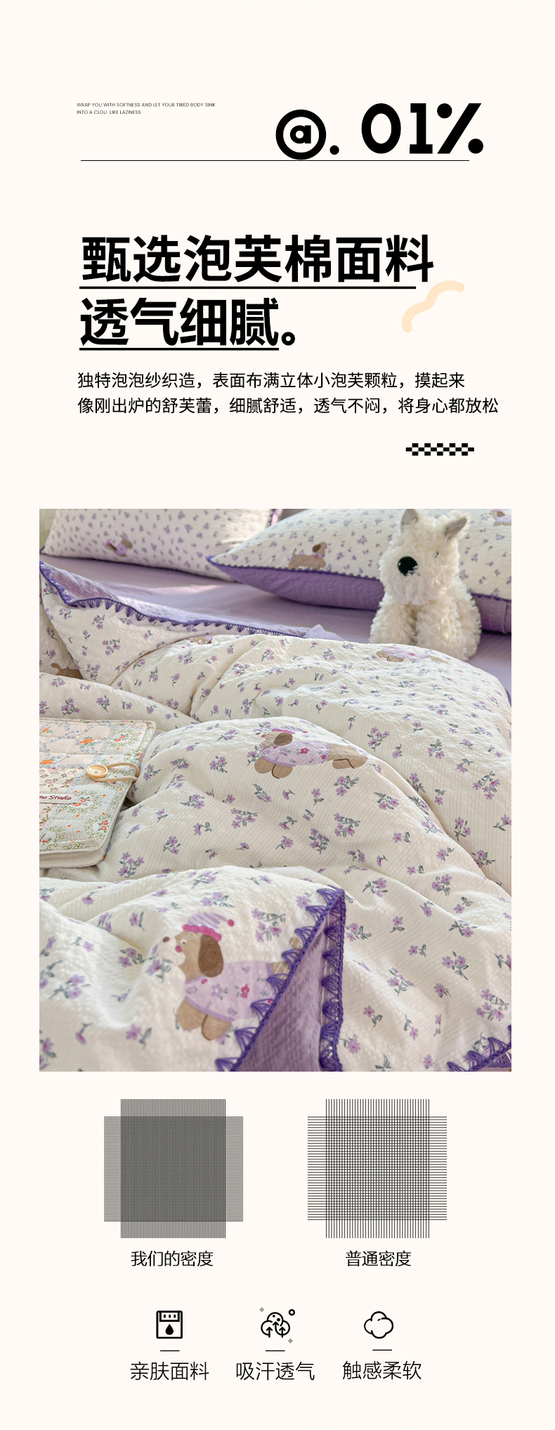 (总)恒尚居 2026新款A类泡芙纱床盖四套件泡芙棉双层纱小花边床垫床褥,波点奶芙小花边,彩虹木马小花边,费尔岛小狗小花边,粉糖泡泡猫小花边,兰格奶狗小花边,奶黄星星人小花边,细格木马小花边,阳光条纹小花边,字母喵喵小花边