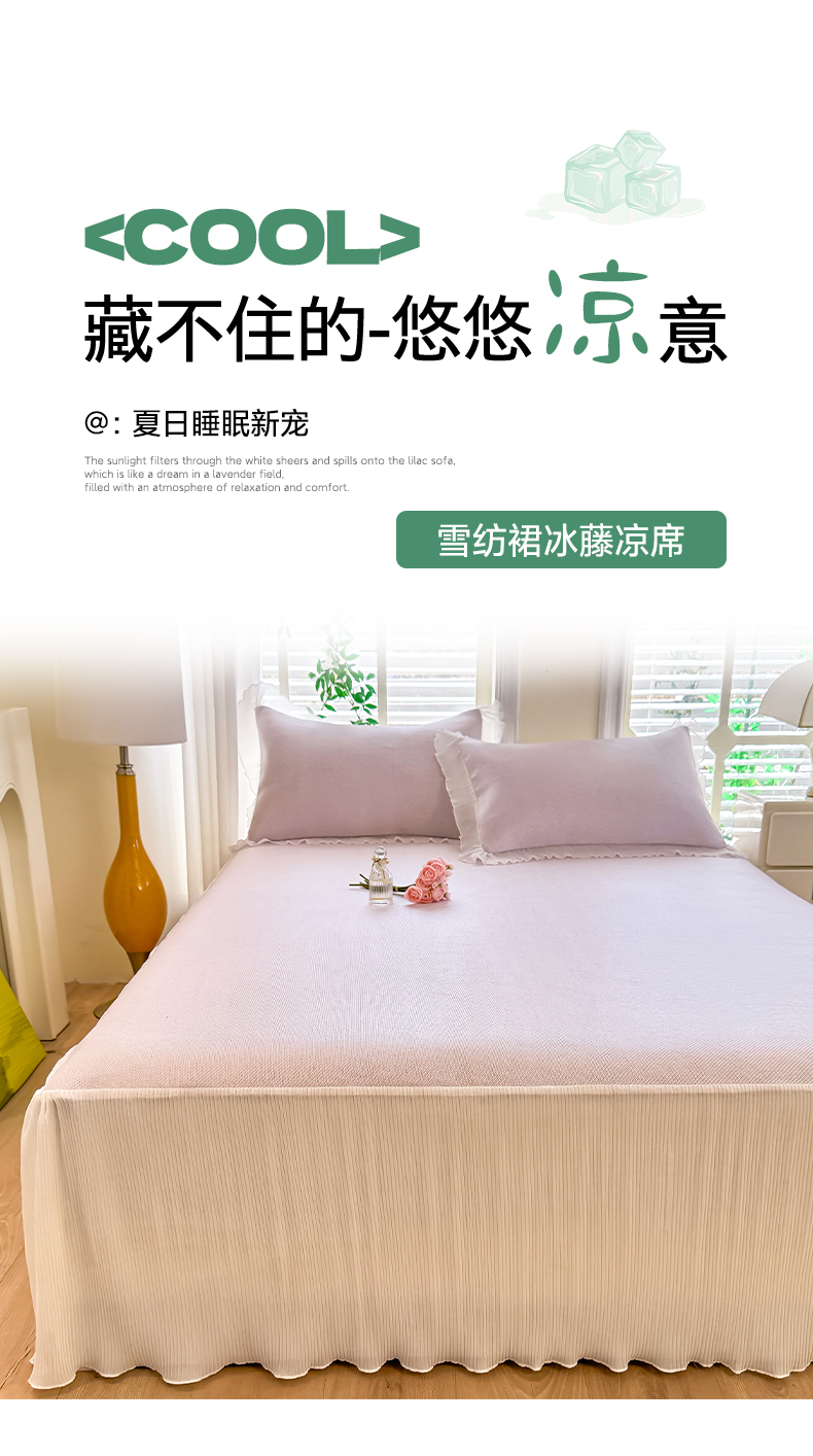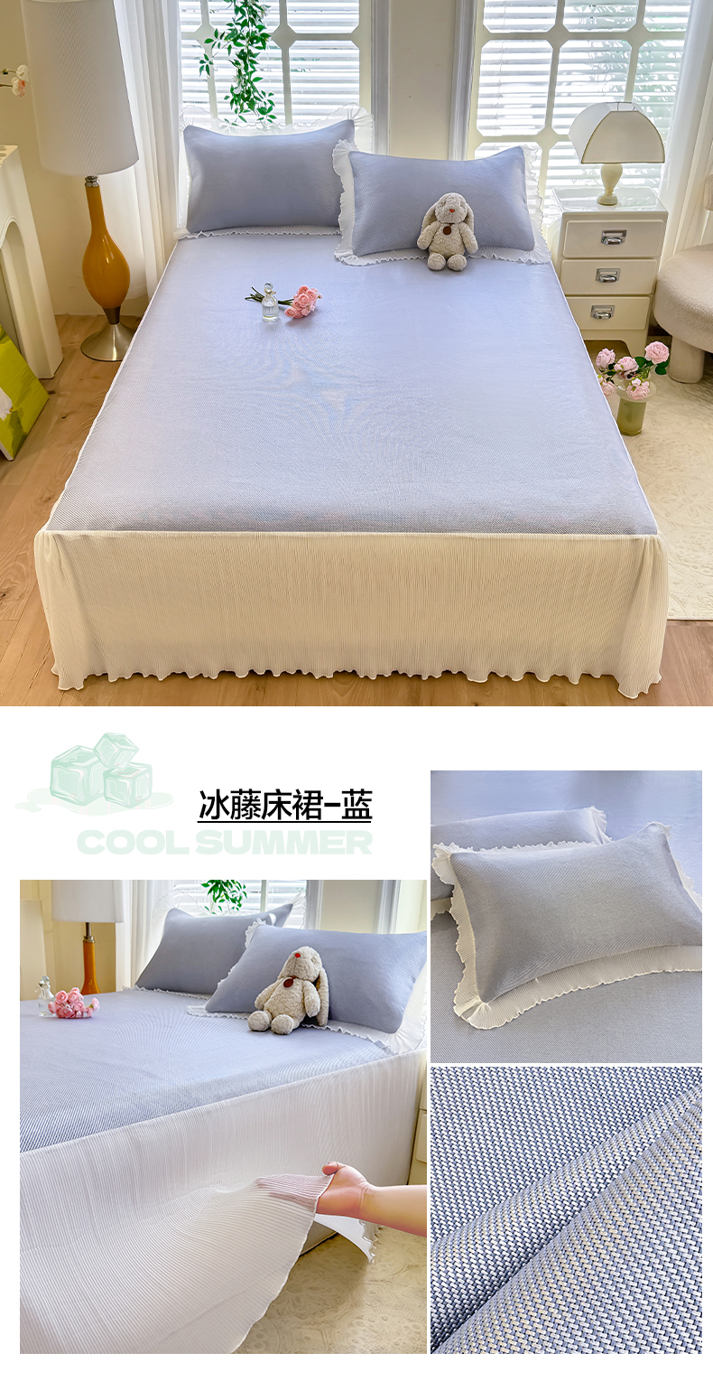 (总)逸尚阁 2026新款A类冰豆豆凉席床裙款系列,冰豆豆-宝石蓝,冰豆豆-清澈绿,冰豆豆-桃子粉,冰豆豆-天空蓝,冰豆豆-仙气粉,冰豆豆-银光灰