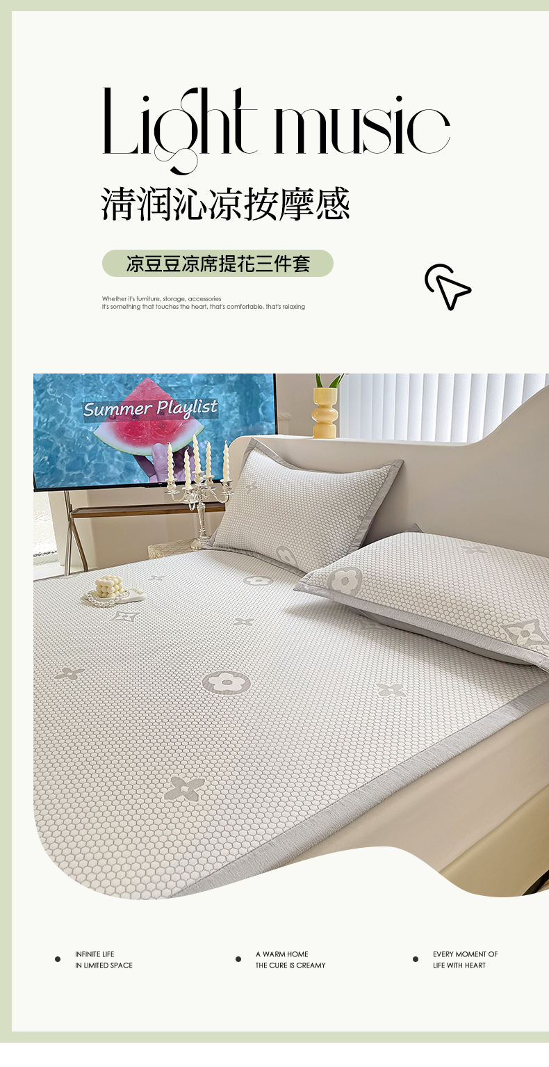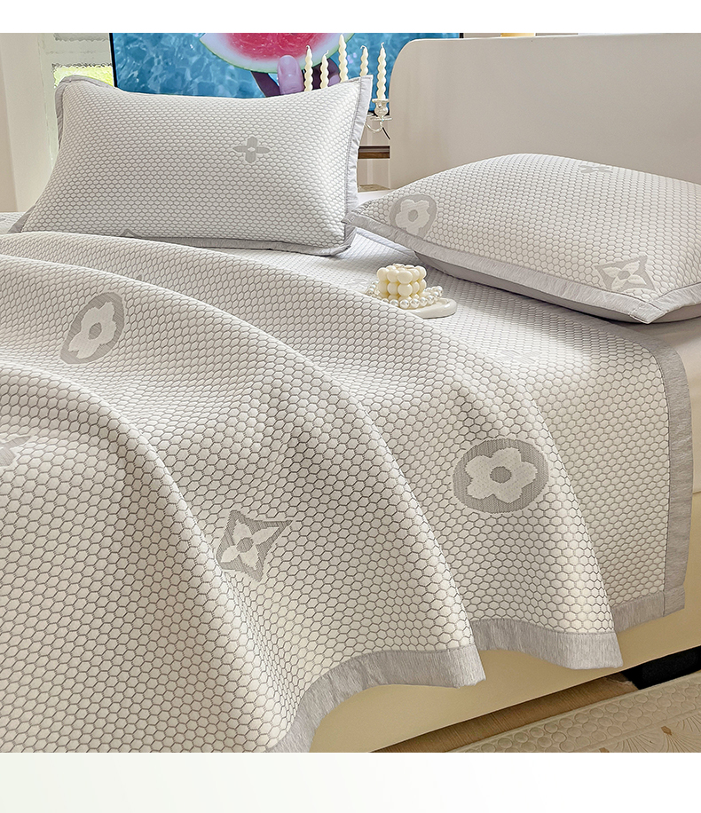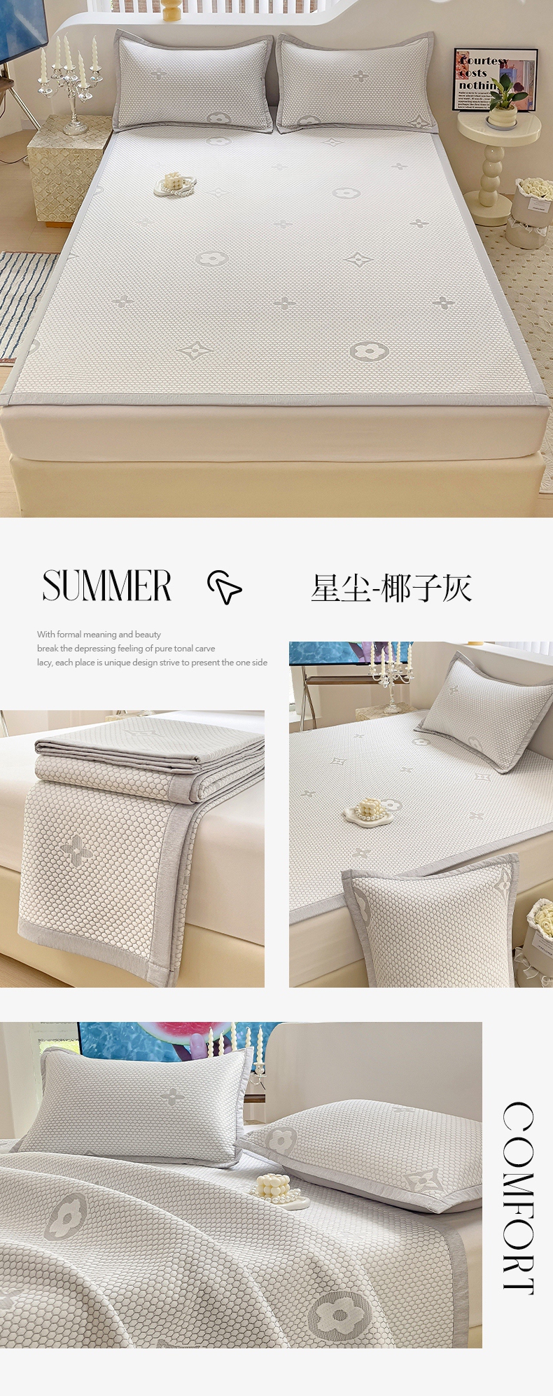 商品名称:逸尚阁 2026新款凉感凉豆豆提花凉席三件套星尘豆豆席 星尘-椰子灰