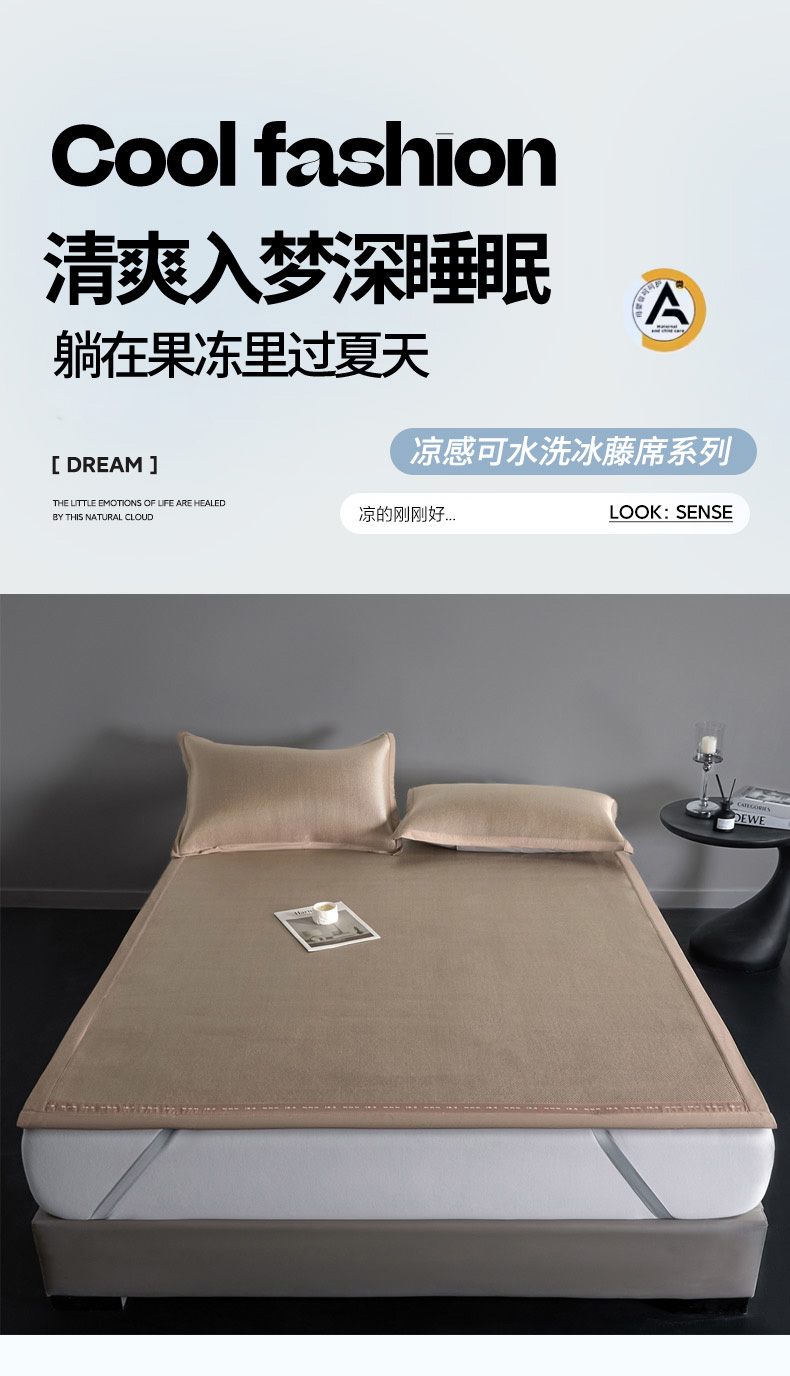 商品名称:印季家纺 2026新款可水洗织带款凉感冰藤软席 金咖