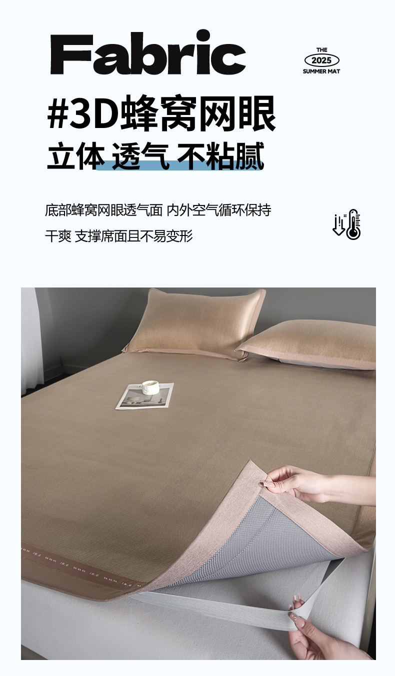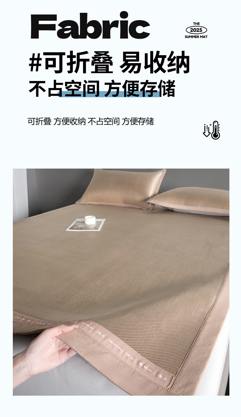 印季家纺 2026新款可水洗织带款凉感冰藤软席 金咖