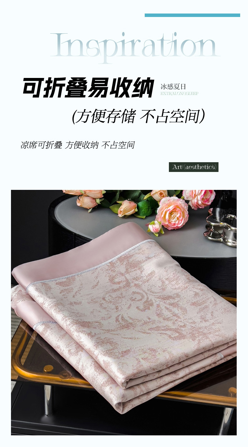 (总)印季家纺 2025新款轻奢简约凉感丝泡泡席-格调凉席,藏蓝,米黄,墨绿,浅粉,银灰