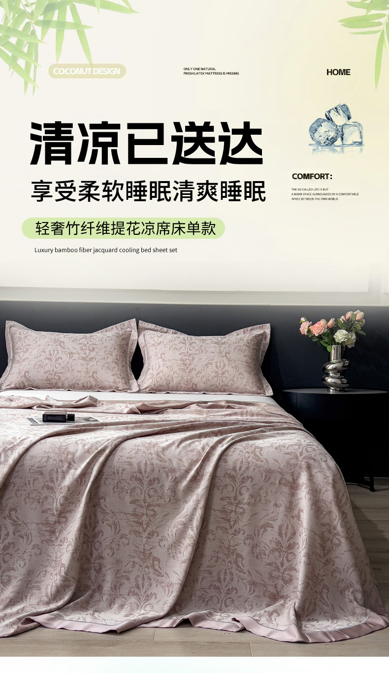 印季家纺 2026新款色织提花100%竹纤维床单凉席 时光之谜-罗汉果