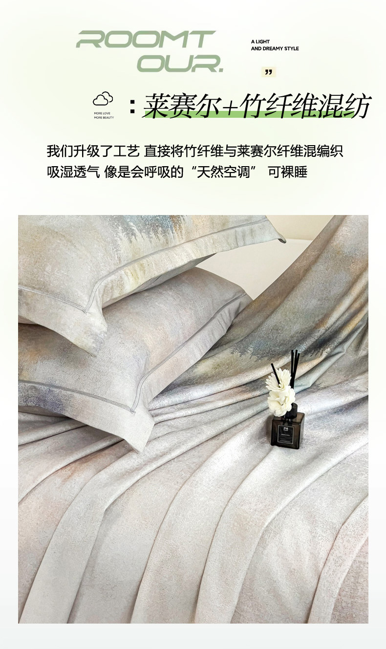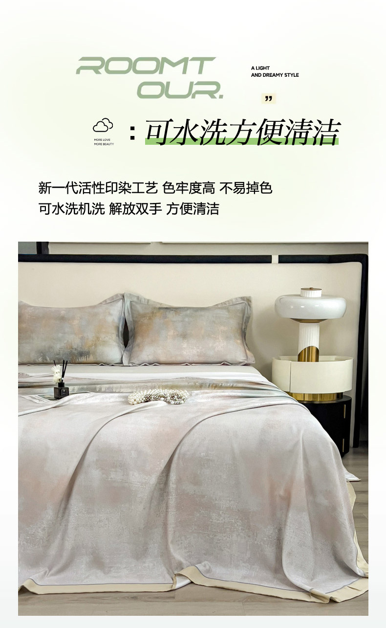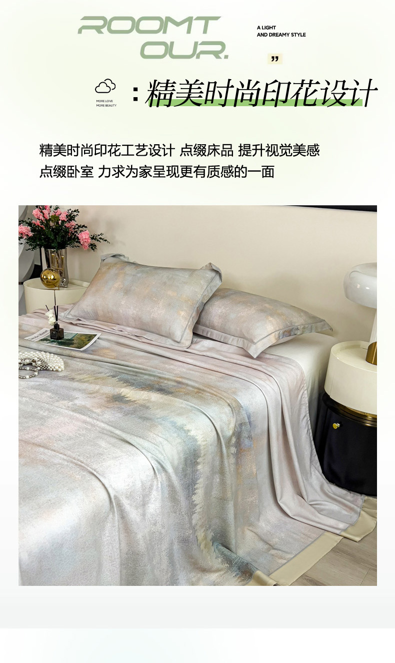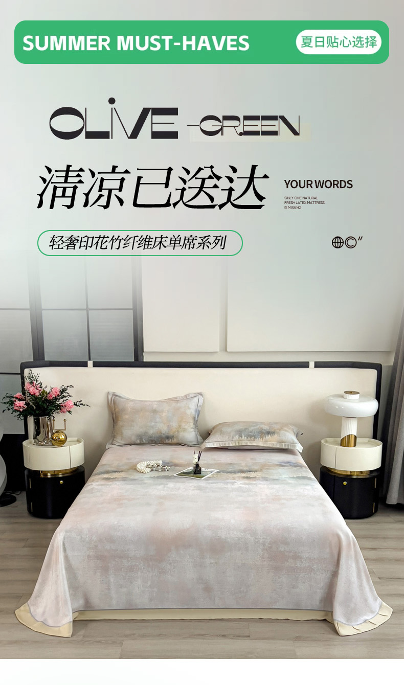 印季家纺 2026新款数码印花竹纤维+莱赛尔床单凉席 江南印象