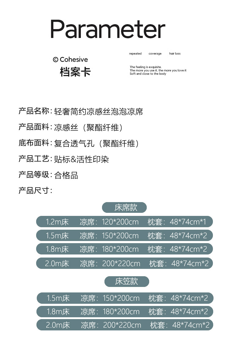 150x200cm单凉席+枕套一对 | ¥110.00 |