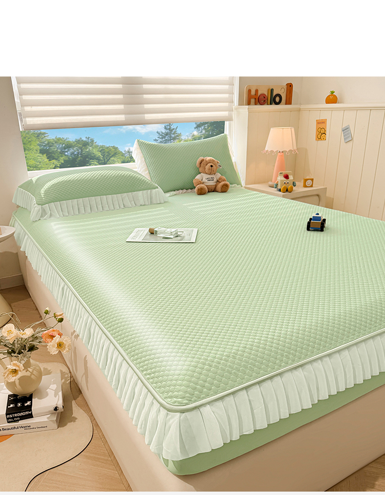 (总)雯豆家纺 2026新款A类凉感丝花边床裙款凉席席子凉席,凉感丝床裙-碧空蓝,凉感丝床裙-春辰绿,凉感丝床裙-淡雅灰,凉感丝床裙-轻奢灰,凉感丝床裙-森林绿,凉感丝床裙-胭脂粉