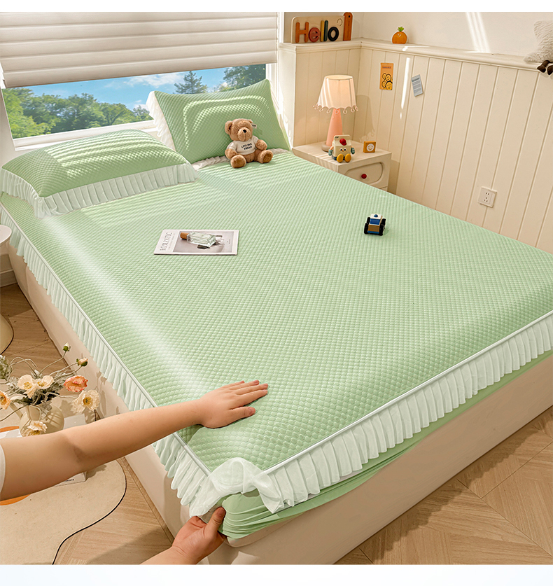(总)雯豆家纺 2026新款A类凉感丝花边床笠款凉席席子凉席