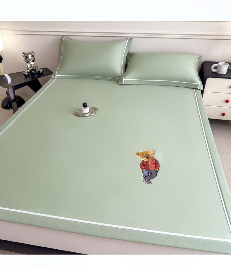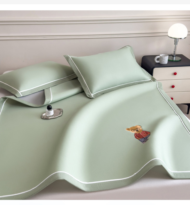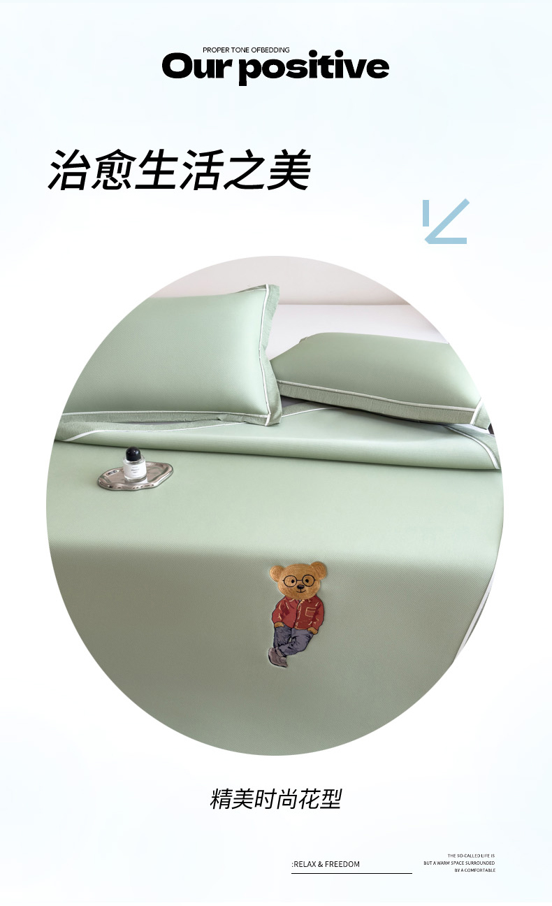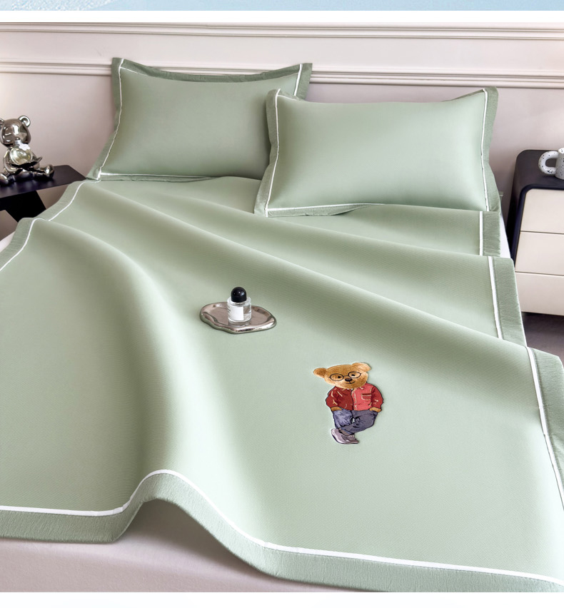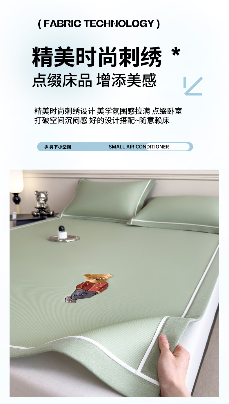 印季家纺 2026新款丝滑凉感绣花软席席子-洛克熊 水绿