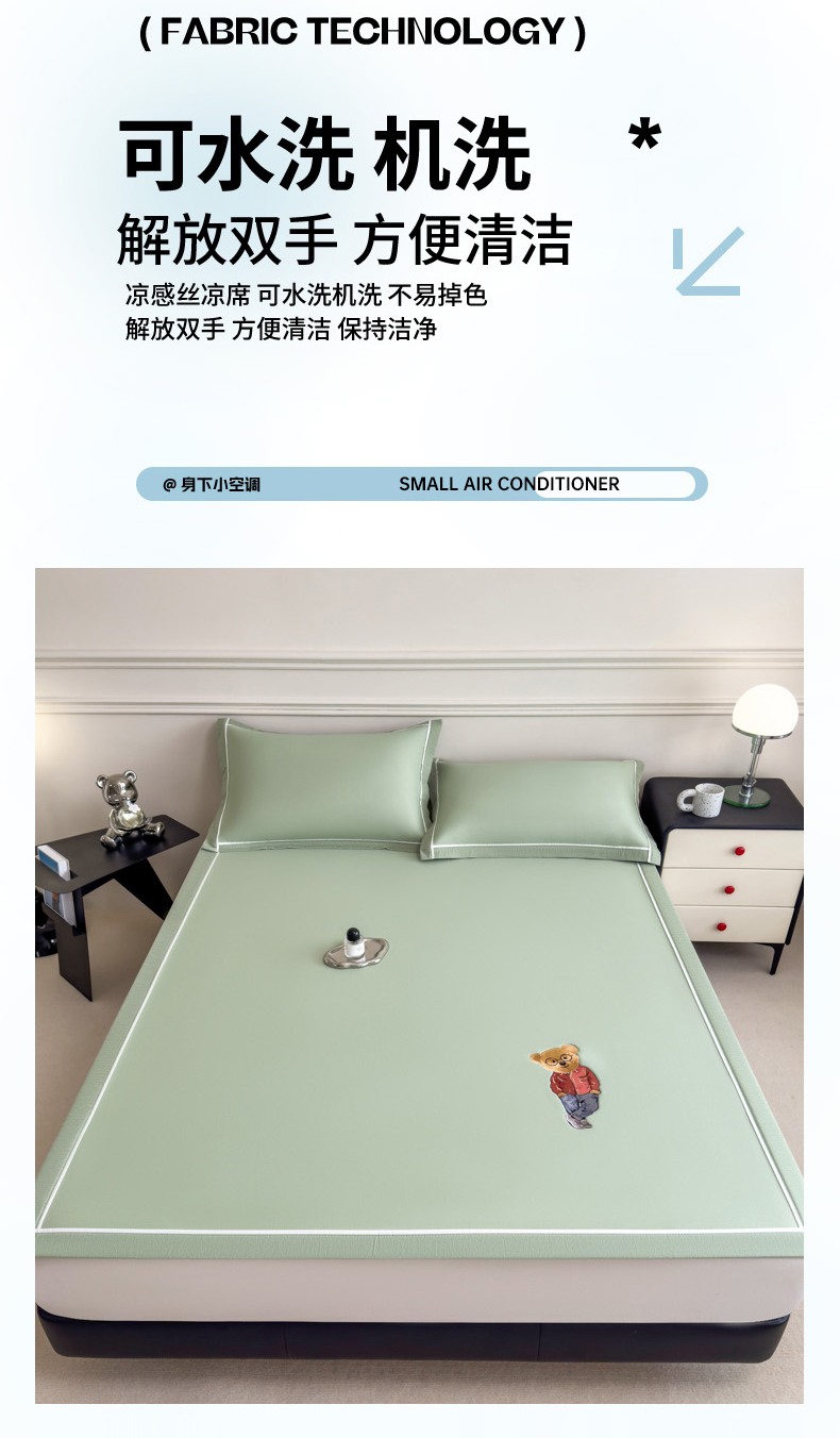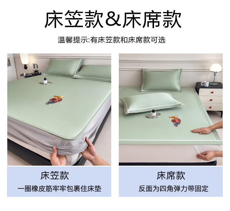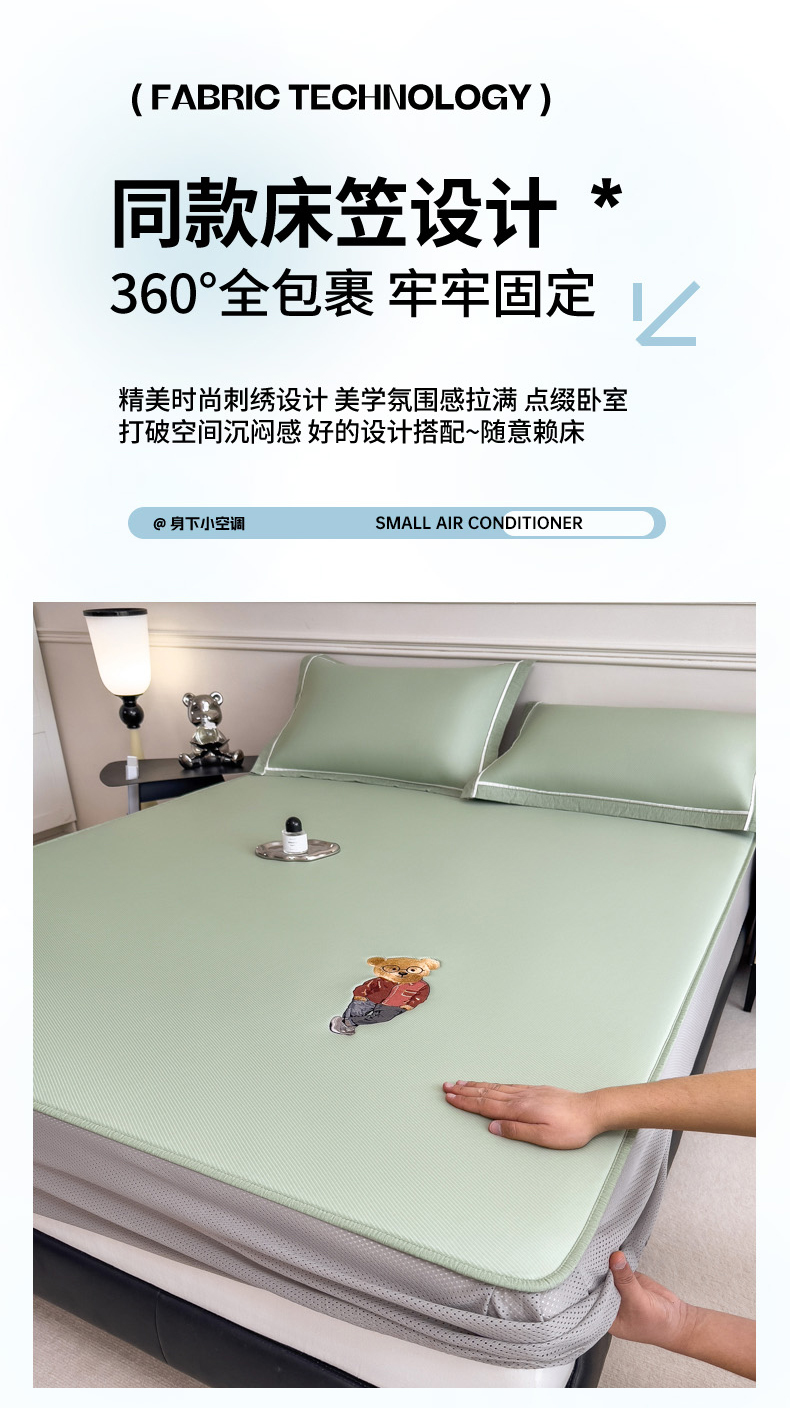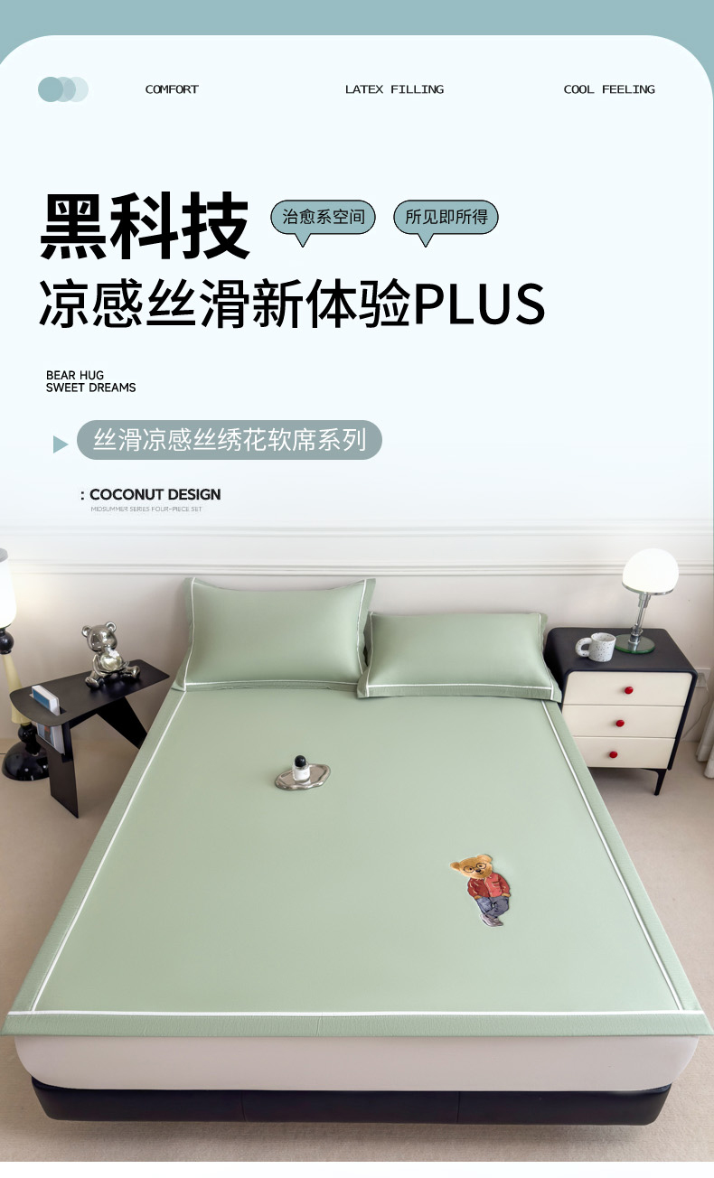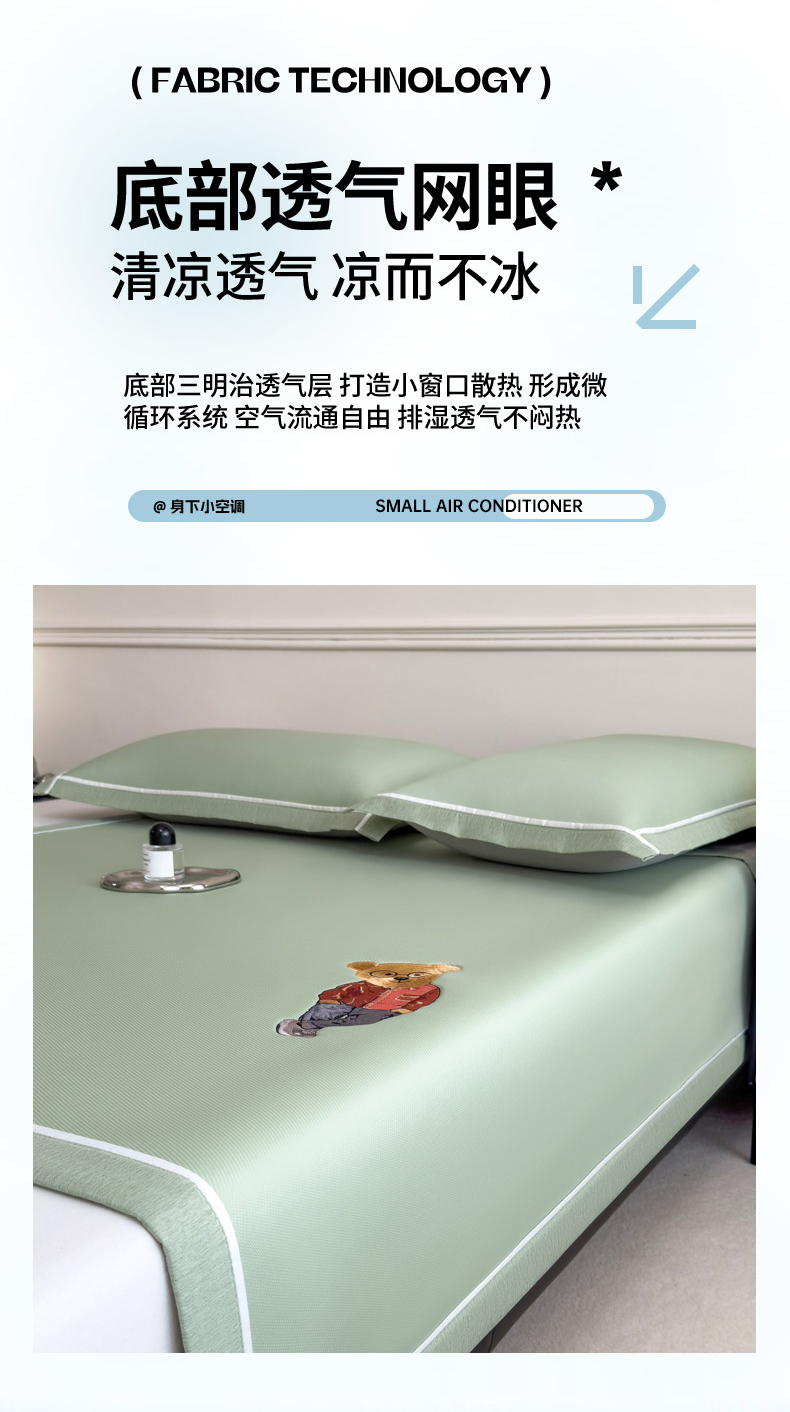 印季家纺 2026新款丝滑凉感绣花软席席子-洛克熊 水绿
